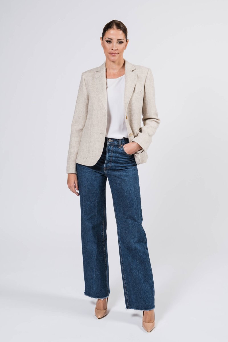 Mix di comfort e leggerezza, realizzato in un tessuto di lana e nel design regular della collezione donna. Questo monopetto abbina materiali pregiati a dettagli sartoriali, come le impunture sartoriali. Un capo casual ed elegante allo stesso tempo, per una donna in cerca di equilibrio.