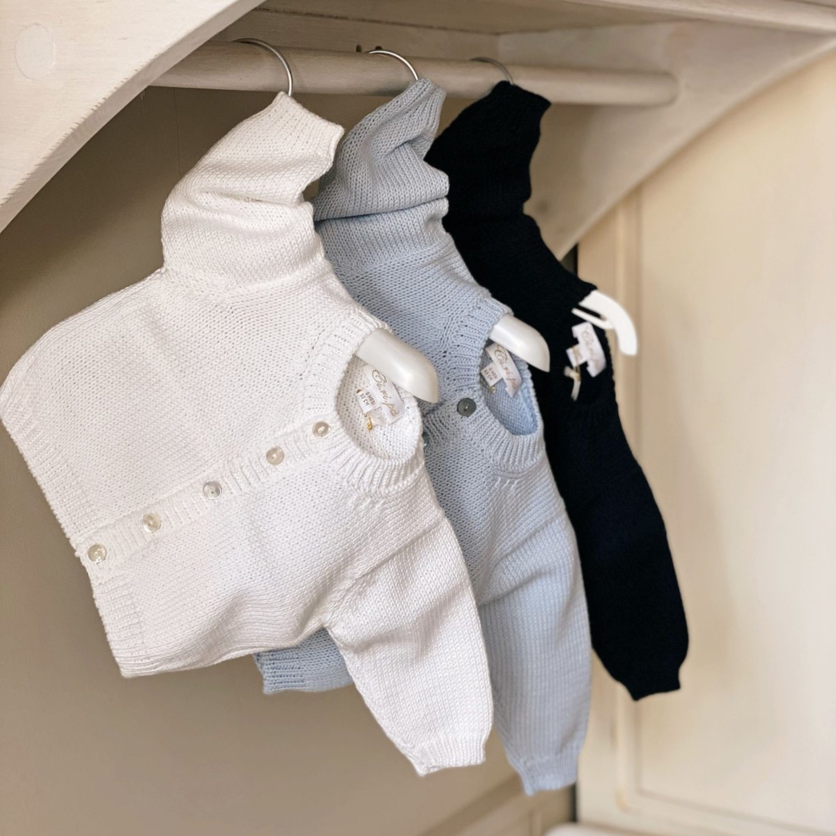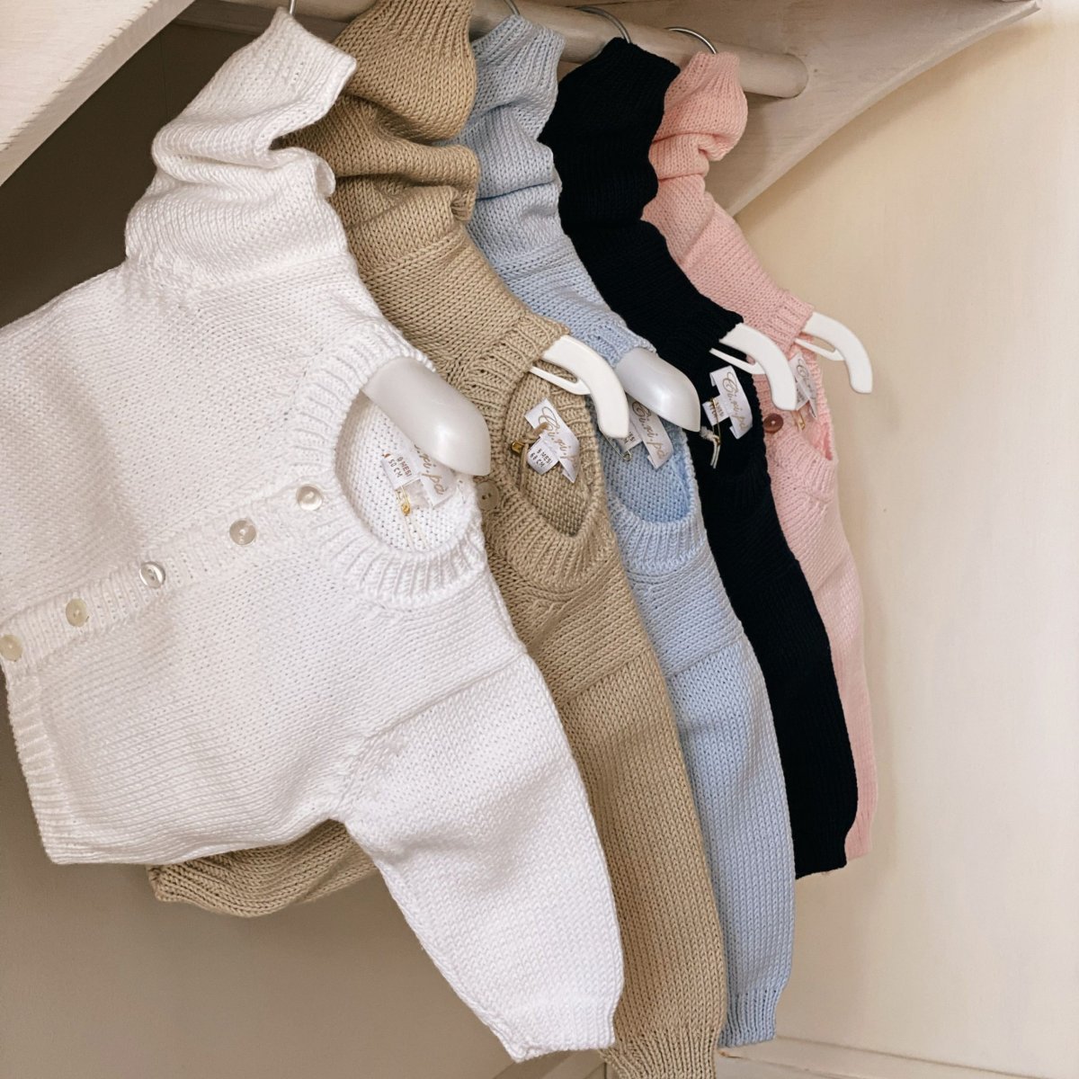 Golfini in 100% cotone, abbottonati davanti con preziosi bottoni madreperla in tono. Morbidi ed indispensabili.