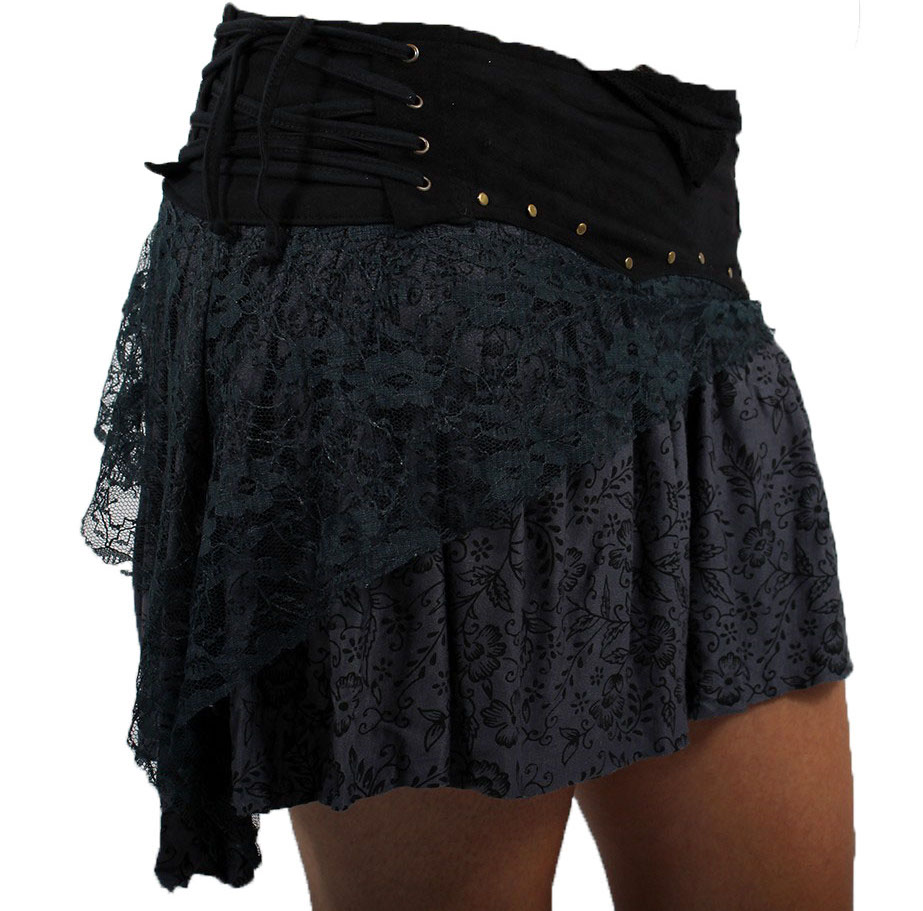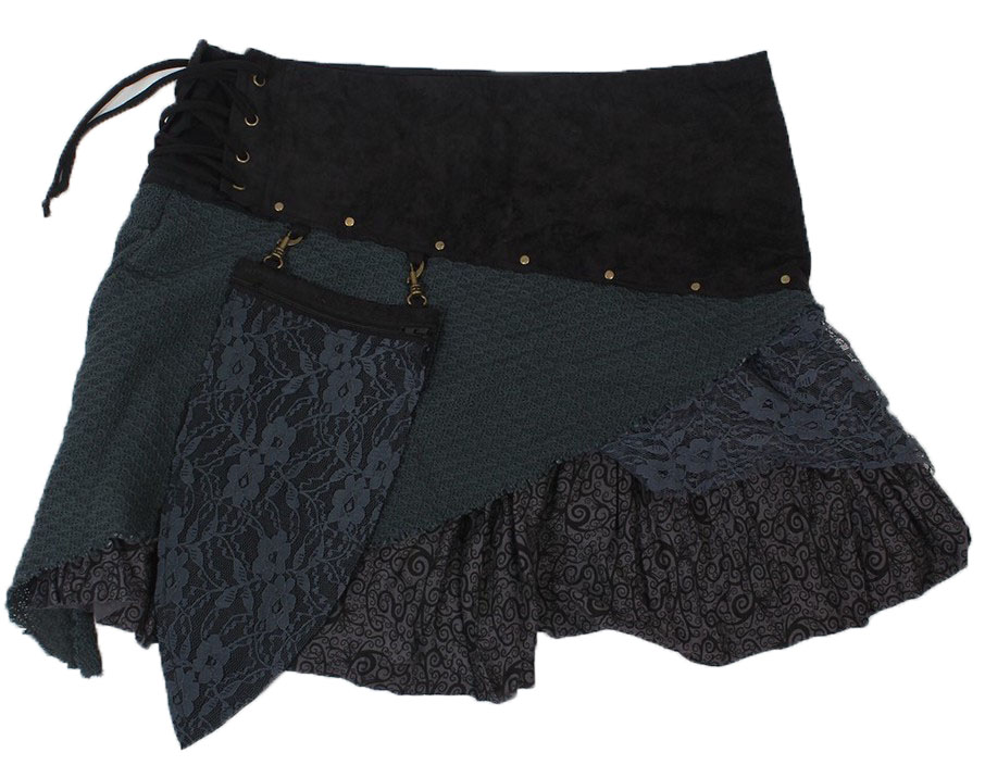 Gonna multi materiali lacci pocket black grey