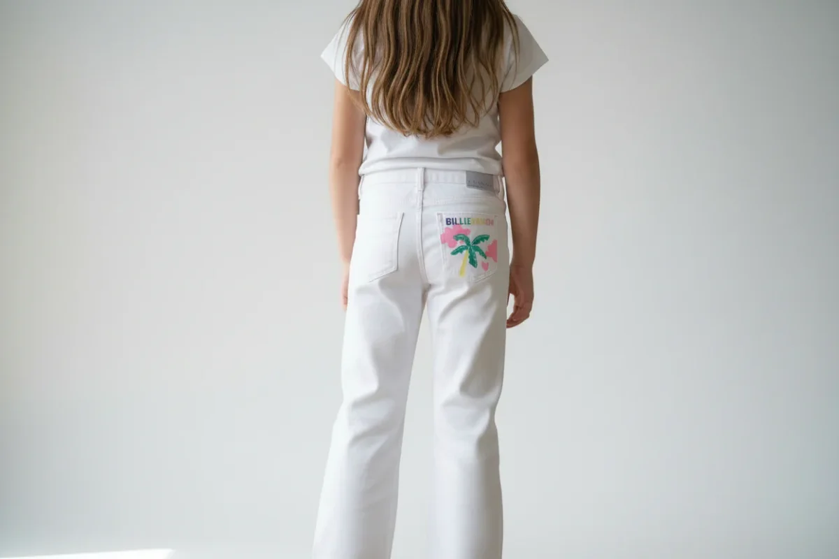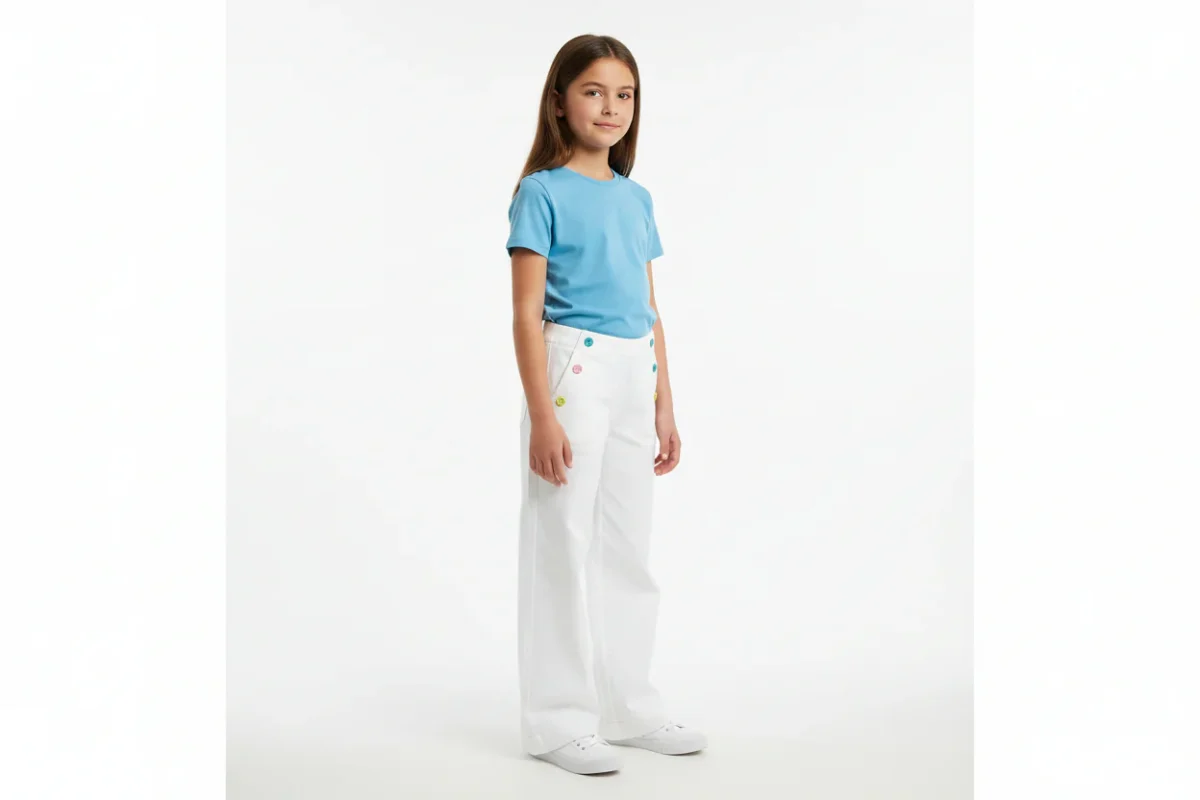 Pantalone palazzo in cotone bianco Billieblush con dettagli che catturano l’attenzione: bottoni colorati sulle tasche frontali e un disegno con scritta logo sul taschino posteriore. Un capo versatile e giocoso, perfetto per creare look casual chic con carattere. La silhouette ampia garantisce comfort e libertร  di movimento, ideale per la stagione primaverile.