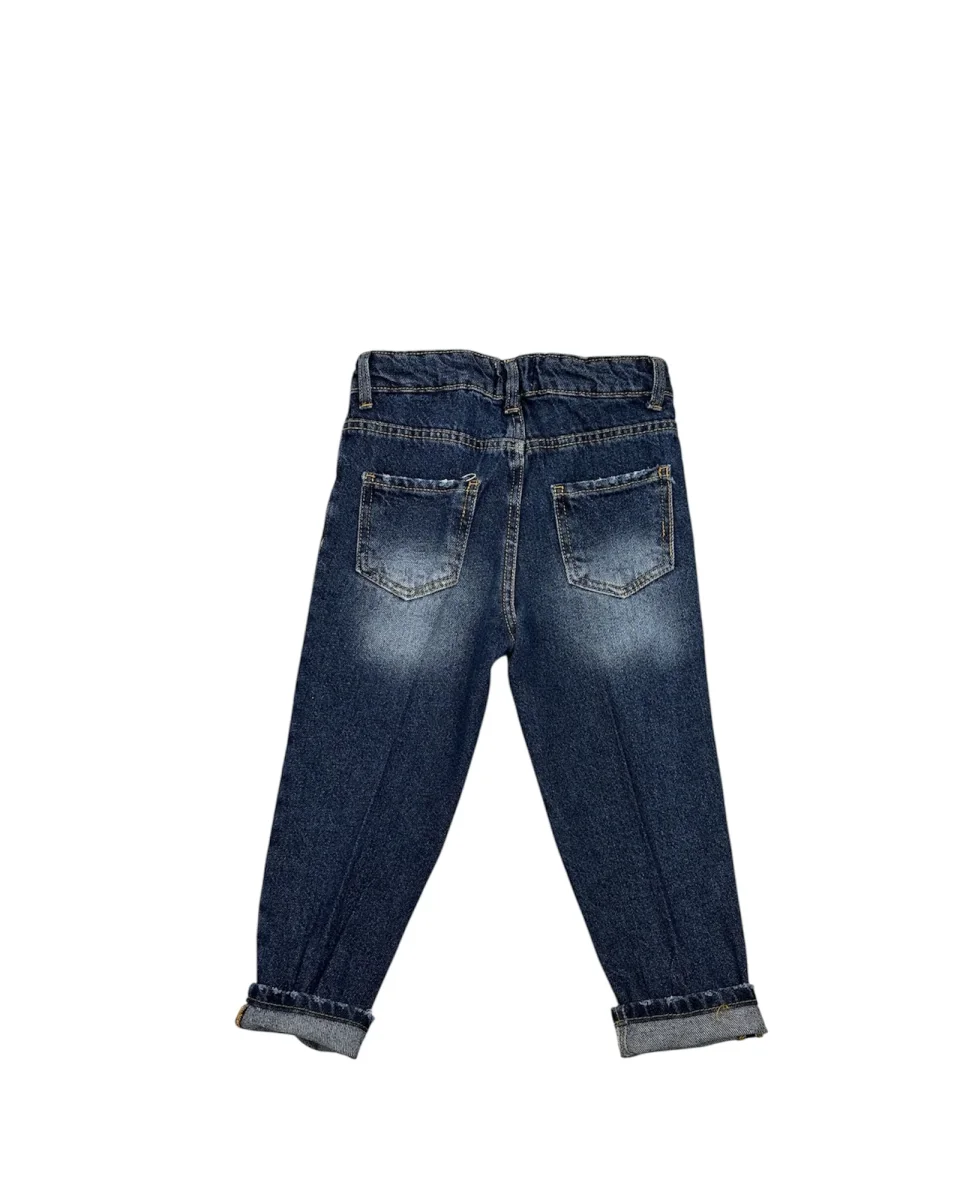 I Jeans Blu V102 sono realizzati in un tessuto morbido che coccola la pelle del tuo bambino. Le piccole abrasioni aggiungono un tocco vivace e divertente, munito di tasche anteriori e posteriori con bottoncini alla chiusura rendono ogni movimento piรน speciale. Il risvoltino di 3 cm completa il look con un pizzico di allegria, adattandosi perfettamente alla vestibilitร comoda e fresca ideale per ogni piccola avventura!