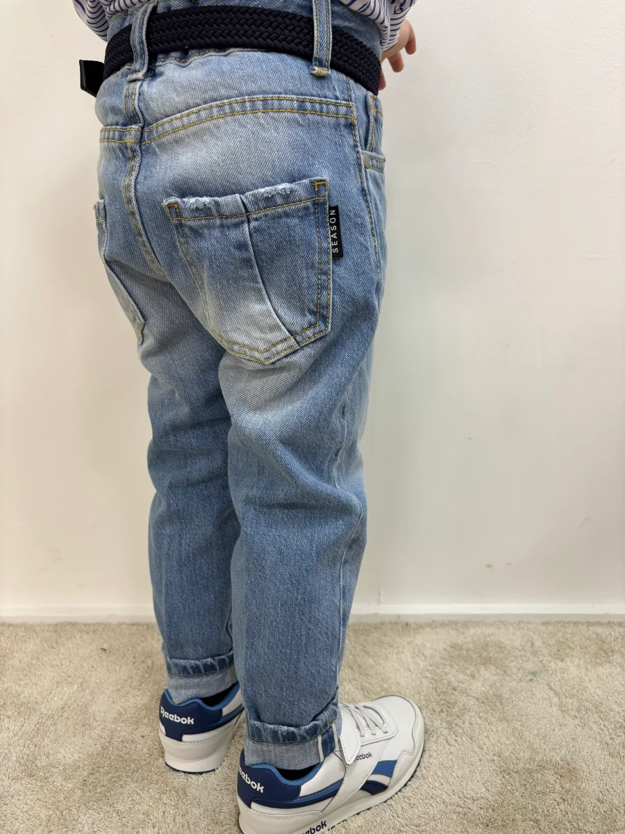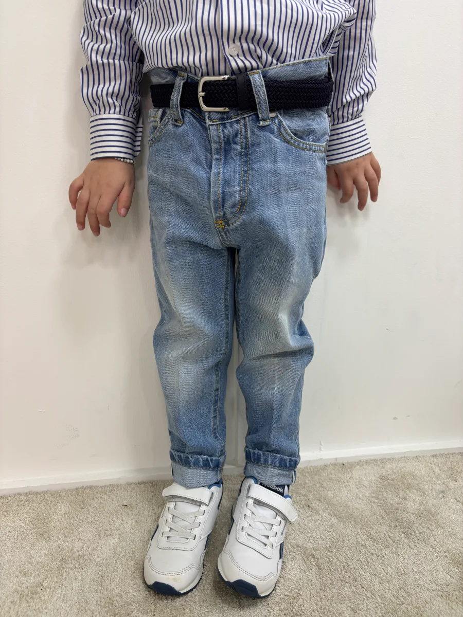 Jeans Cimosato รจ il jeans perfetto per i tuoi bambini. Realizzato con un tessuto pregiato, dispone di un laccetto regolabile interno per garantire una perfetta vestibilitร . Resta comodo in ogni momento grazie al suo design resistente e alla possibilitร di adattarsi alla crescita dei bambini. Per taglie e misure confronta la tabella in basso.
