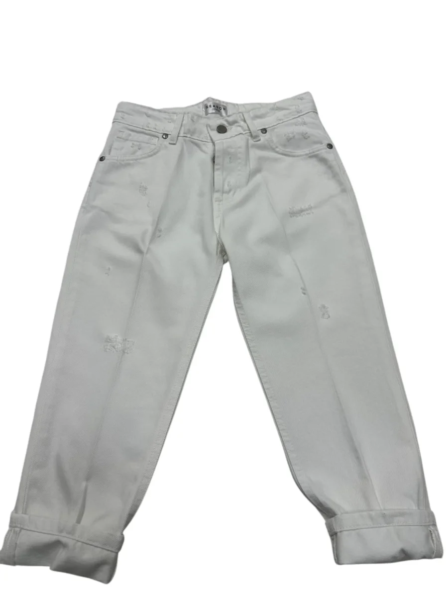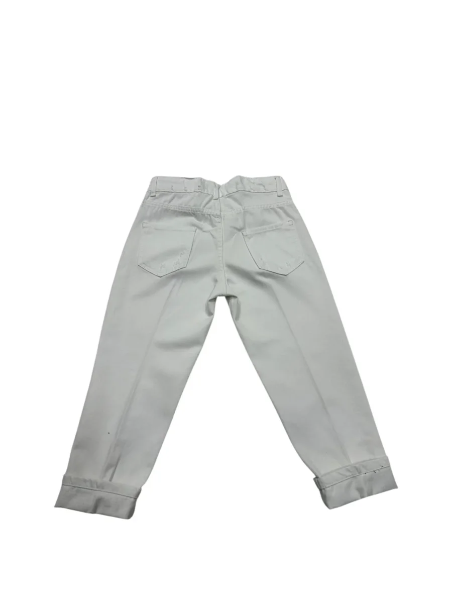 Jeans cinque tasche in bianco, il capo essenziale per il tuo guardaroba. Realizzati con un taglio comodo e versatile, si adattano perfettamente a ogni occasione, dalla scuola al tempo libero. Le microfatture donano un dettaglio sofisticato, mentre la vestibilitร pratica garantisce libertร di movimento tutto il giorno. Un must-have che non puรฒ mancare nella collezione di ogni ragazzo.