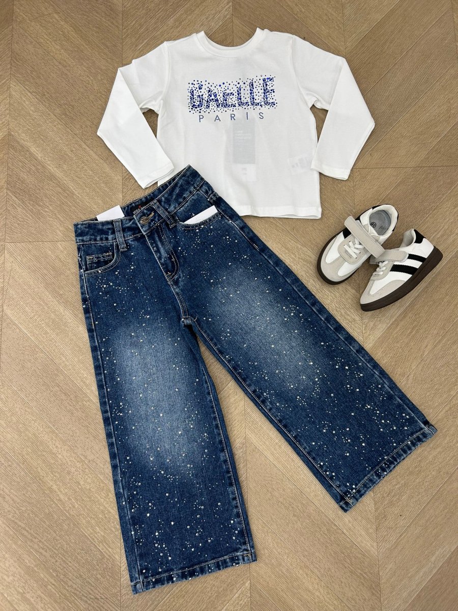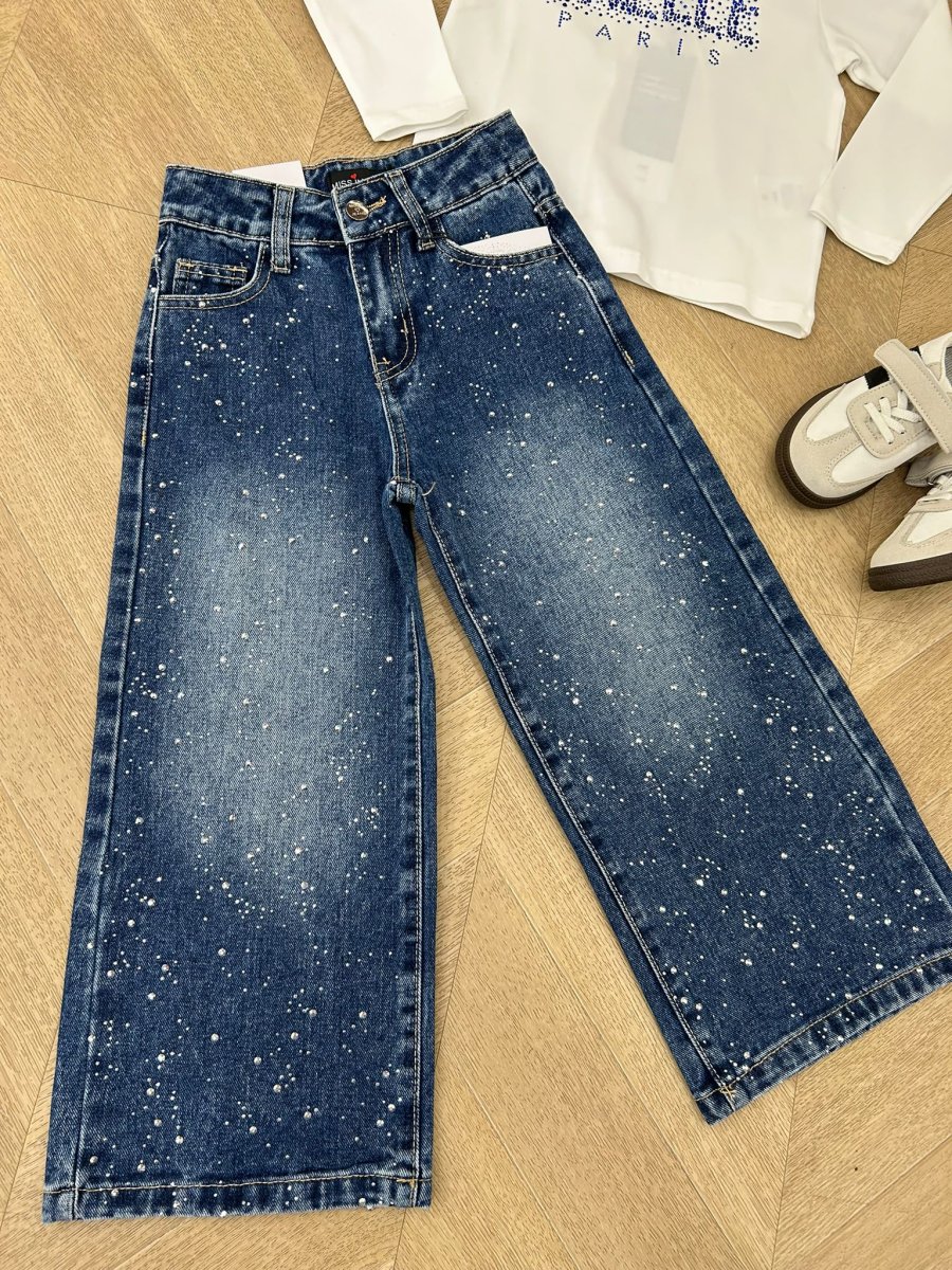 Questi jeans palazzo neri per bambina sono caratterizzati da un motivo a costellazioni elegante e discreto. La vestibilitร ampia garantisce comfort e libertร di movimento durante tutta la giornata, mentre il tessuto di alta qualitร assicura durata e resistenza. Un capo versatile, ideale per combinare stile e praticitร nelle occasioni quotidiane e speciali.