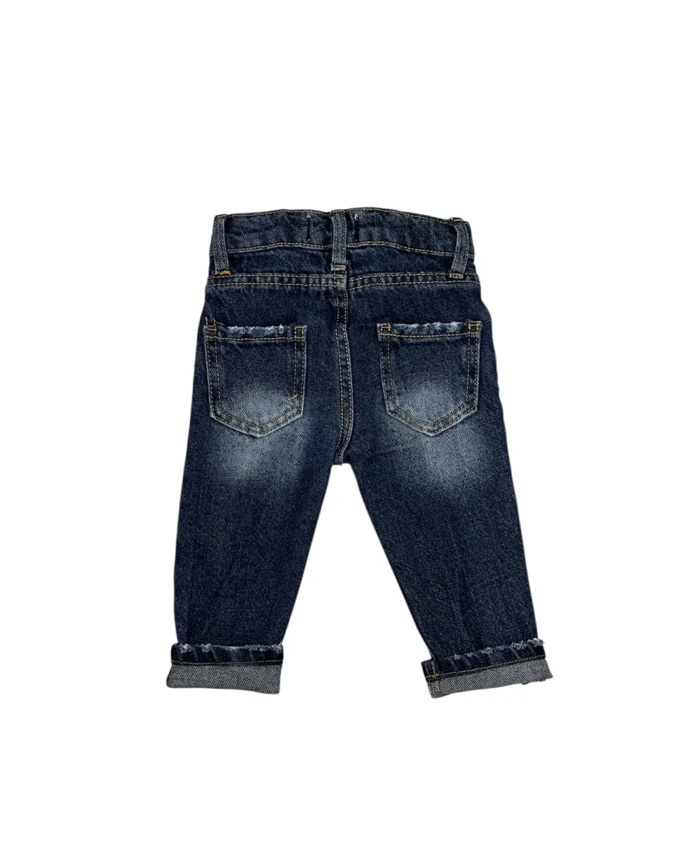 I Jeans Neonato Blu V102 sono realizzati in un tessuto morbido che coccola la pelle del tuo bambino. Le piccole abrasioni aggiungono un tocco vivace e divertente, munito di tasche anteriori e posteriori con bottoncini alla chiusura rendono ogni movimento più speciale. Il risvoltino di 3 cm completa il look con un pizzico di allegria, adattandosi perfettamente alla vestibilità comoda e fresca ideale per ogni piccola avventura!