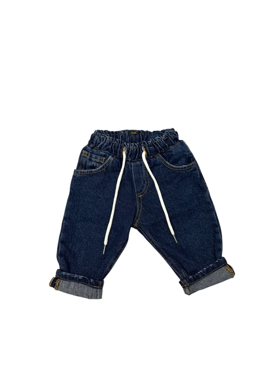 Questi jeans con coulisse in vita e laccetto regolabile combinano comfort e stile senza sforzo. Le tasche frontali e posteriori aggiungono praticità, mentre il lavaggio zero dona un look naturale. Gioca con il tuo stile!