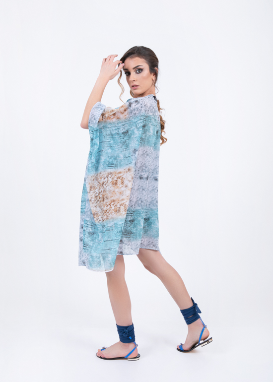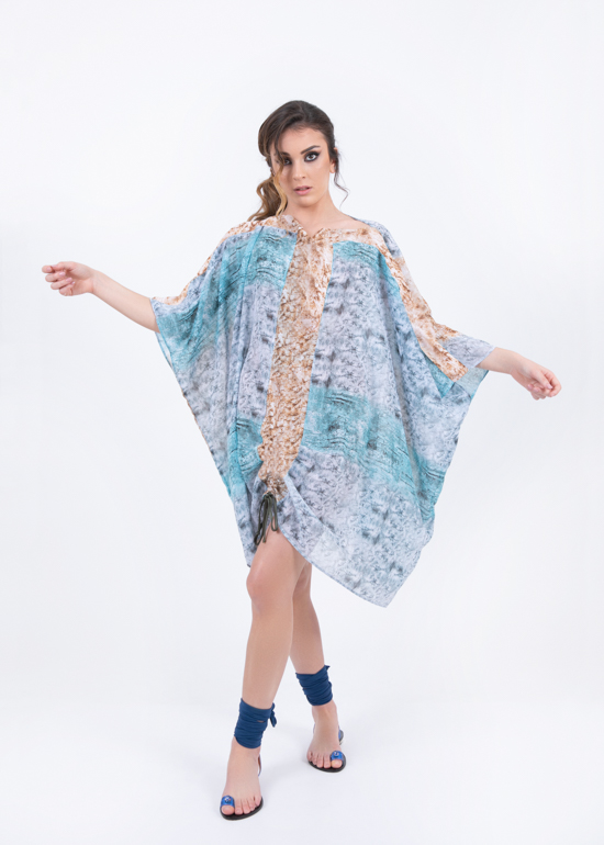 Kaftano ampio a forma squadrata, con arricciatura centrale.