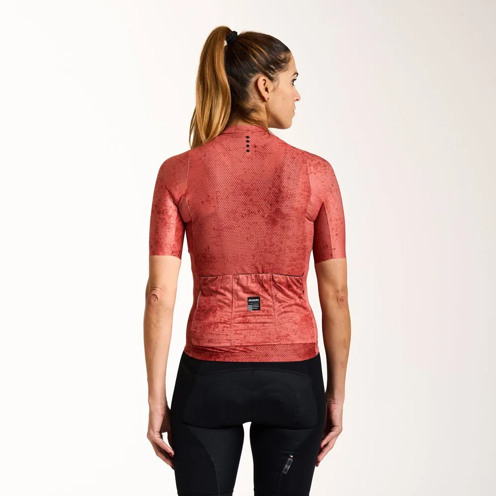 La nuova maglia da ciclismo a maniche corte Lune, nella raffinata tonalitร Terra, รจ realizzata nel modello Gamma, pensata per garantire il massimo comfort e una vestibilitร impeccabile. Quando indossata, offre una sensazione di perfetta aderenza tipica della maglia race fit, senza compromettere la libertร di movimento.