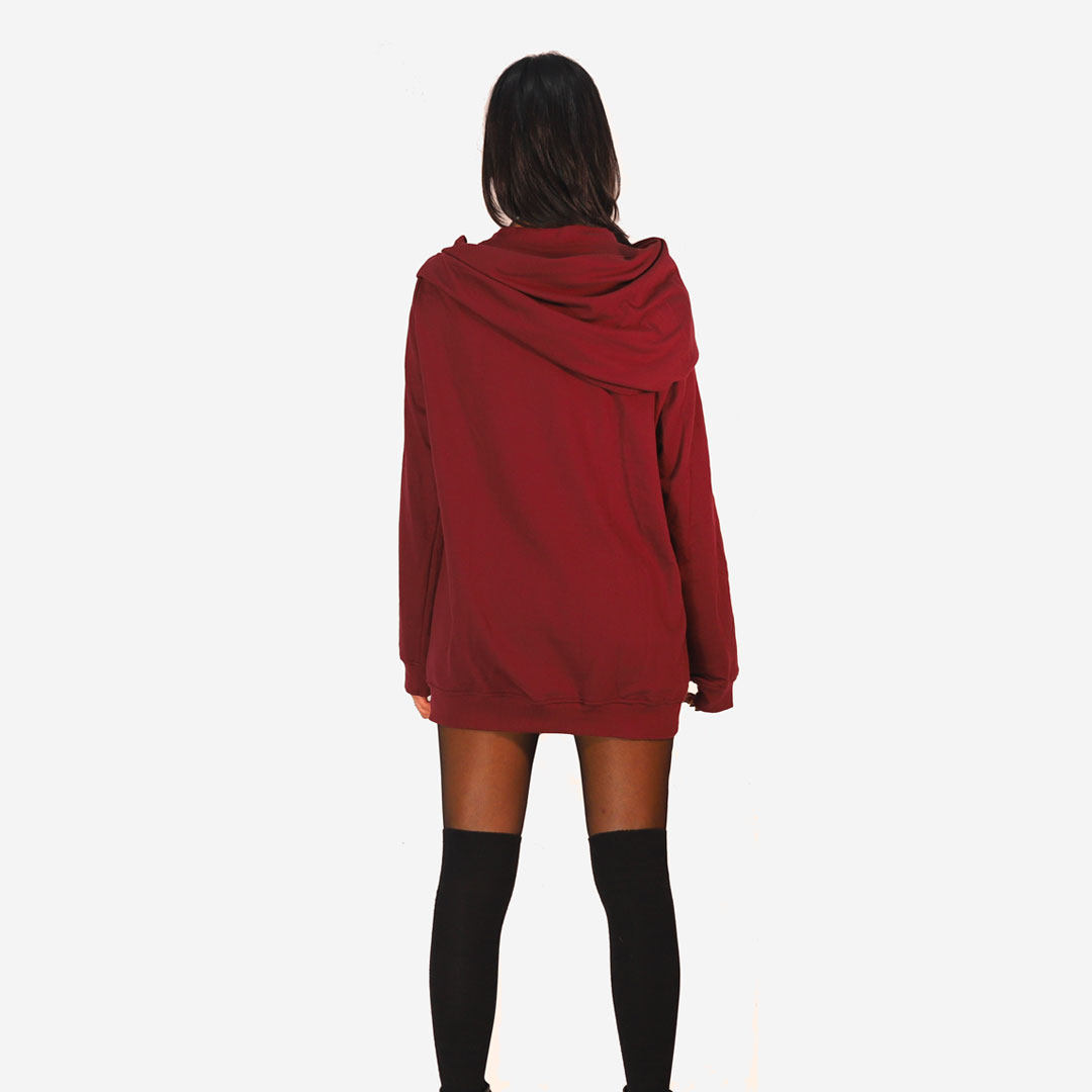 Maglia collo cappuccio nera bordeaux
