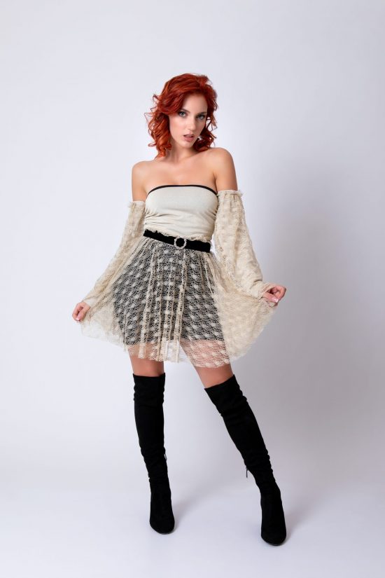 Romantica e glamour la gonna Byda in lycra nera, diventerà il tuo capo preferito di quest’inverno, con cinta in velluto con fibbia gioiello. Adatto a molte tipologie di donne grazie al tessuto elasticizzato che permette un ampia vestibilità. Completa il look la gonnellina in rete oro, trasformabile in un romantico ed elegante top. CONTATTACI PER UNA CONSULENZA SULLA TAGLIA ATTRAVERSO LA NOSTRA FINESTRA WHATSAPP, VESTIAMO TUTTE LE TAGLIE DALLA 38 ALLA 48!
