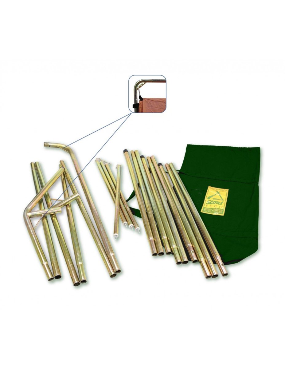 Paleria completa di ricambio per tenda Brownsea, sacca di compressione con tasca porta nome in PVC trasparente, tracolla in nastro e chiusura con coulisse. Paleria in acciaio Peso: kg 8,8