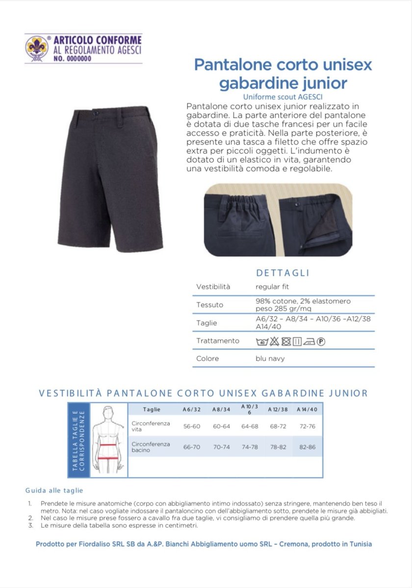 Pantaloni corti blu ufficiali Uniforme Agesci in gabardine 100% cotone, modello maschile