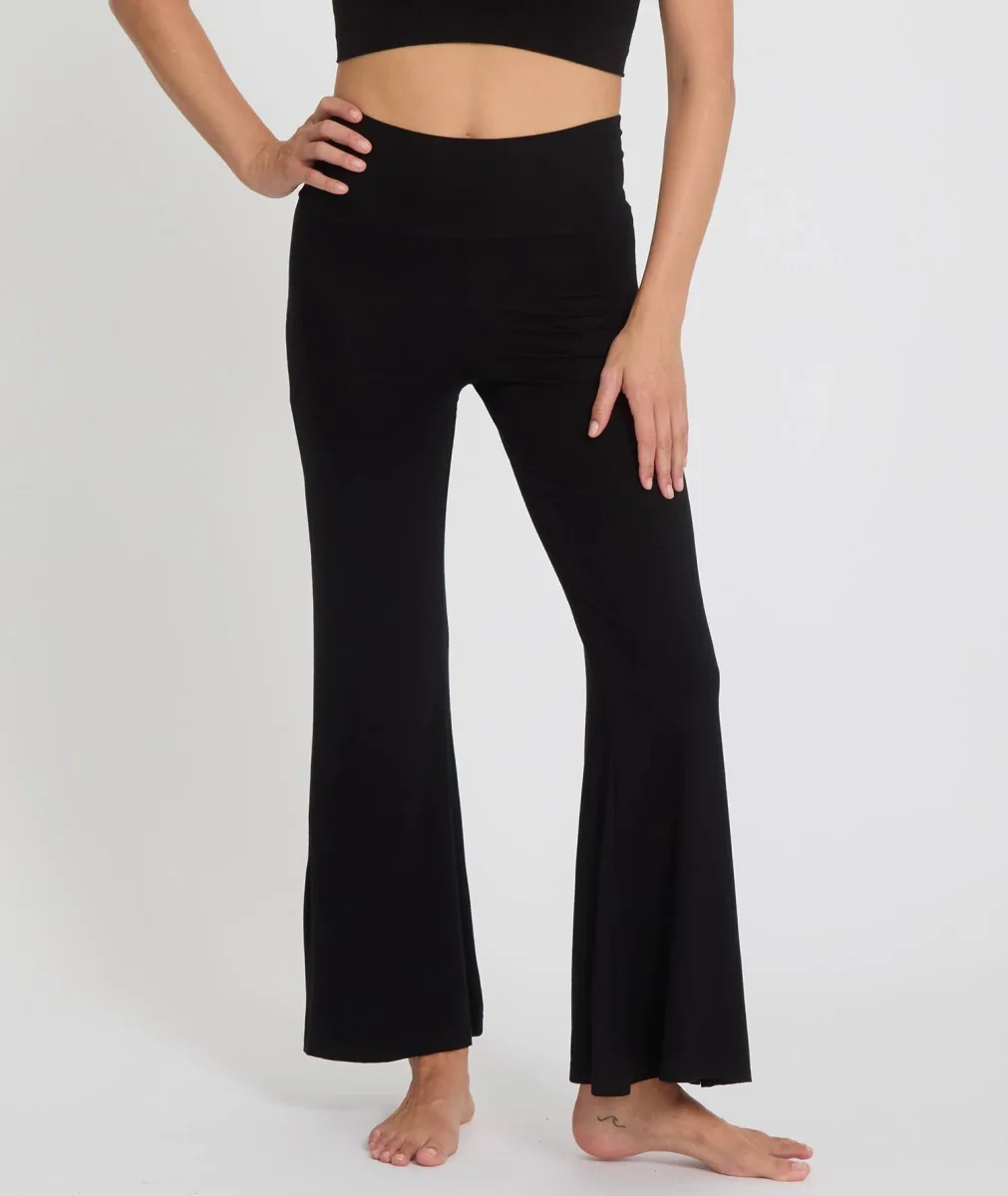 Pantaloni da yoga in bambù estremamente morbidi. Taglio svasato sulla gamba.