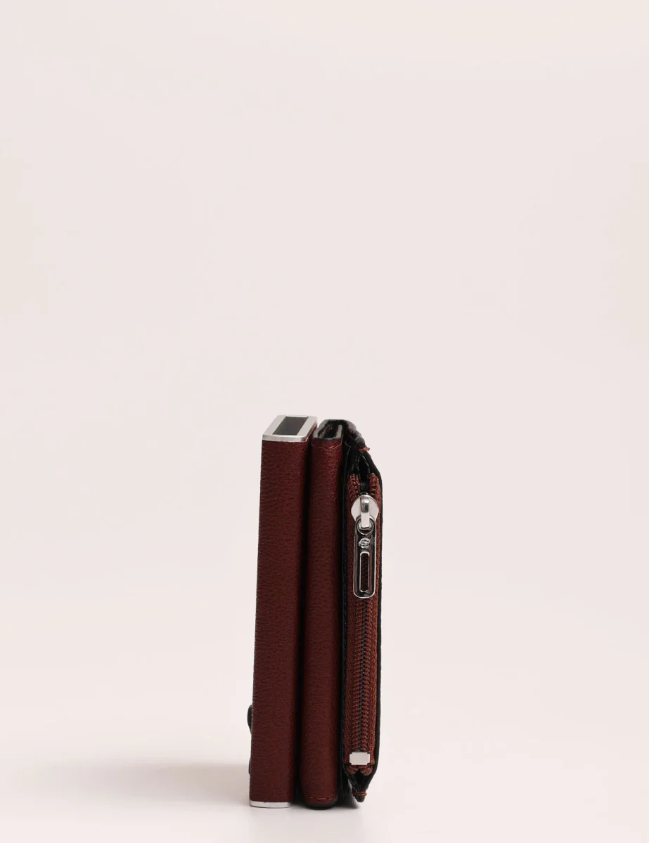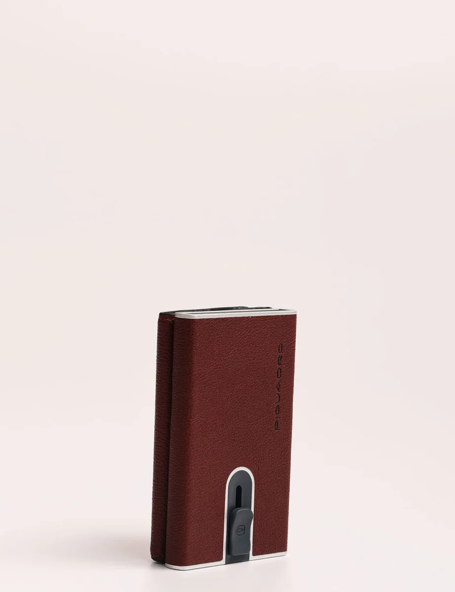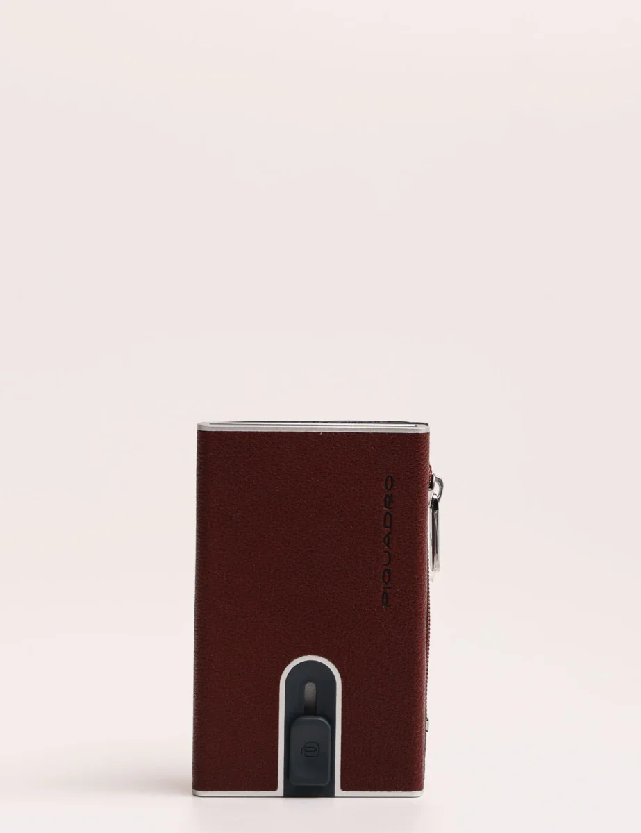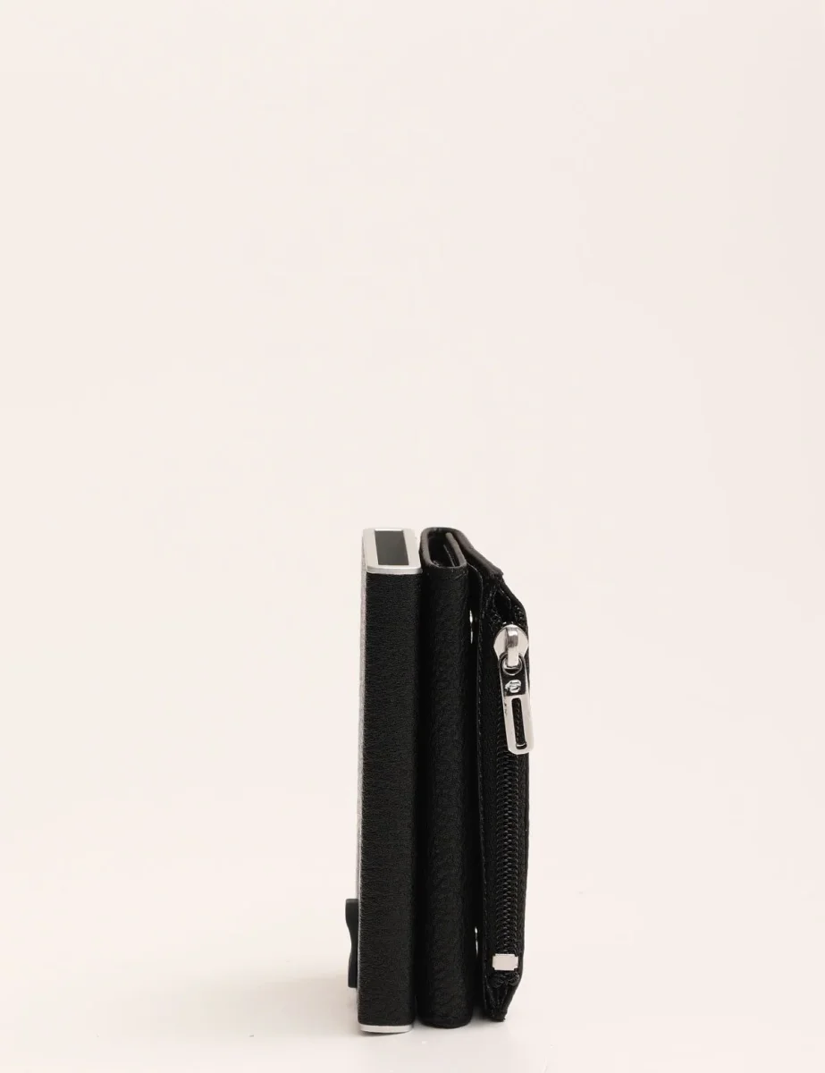 Portafoglio Piquadro modello compact wallet con sistema scorrevole per carte di credito, tasca posteriore con zip e scomparto porta banconote