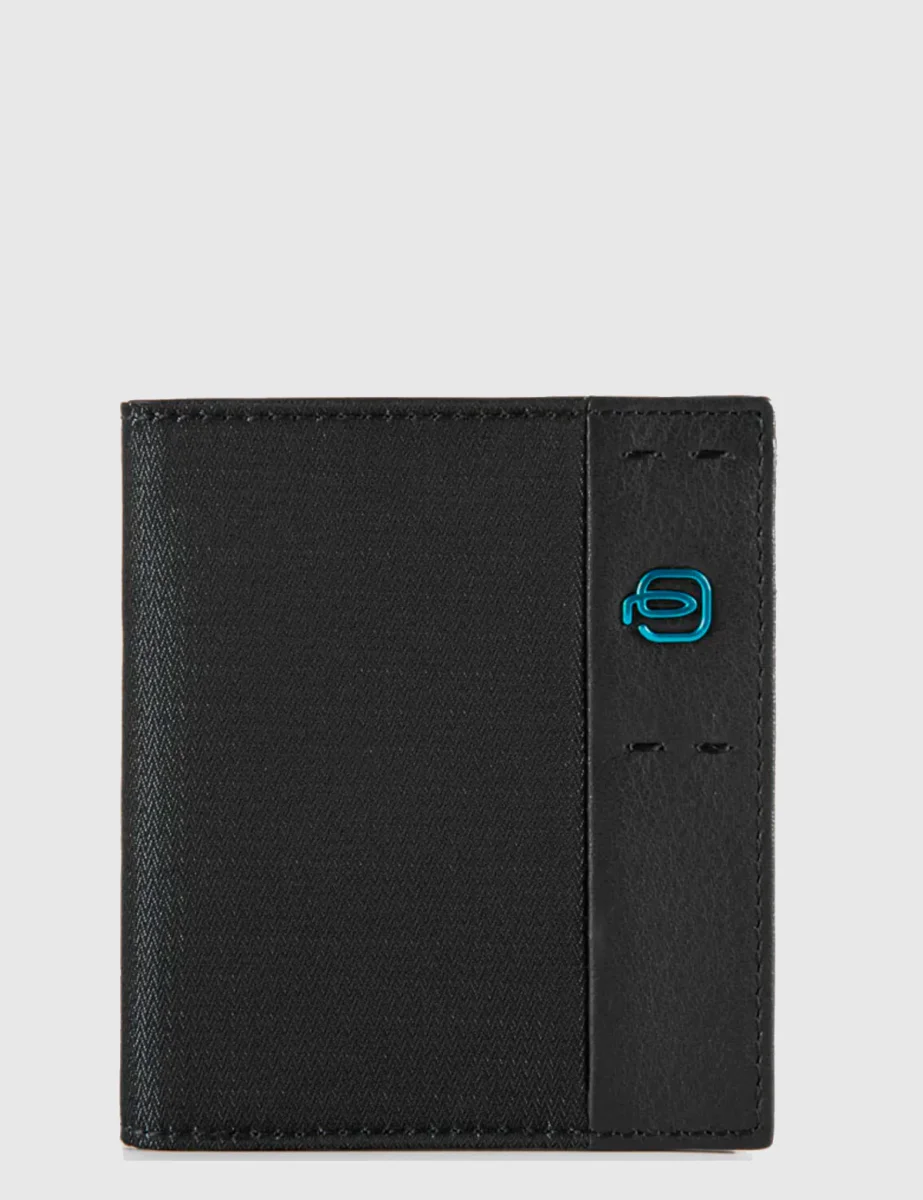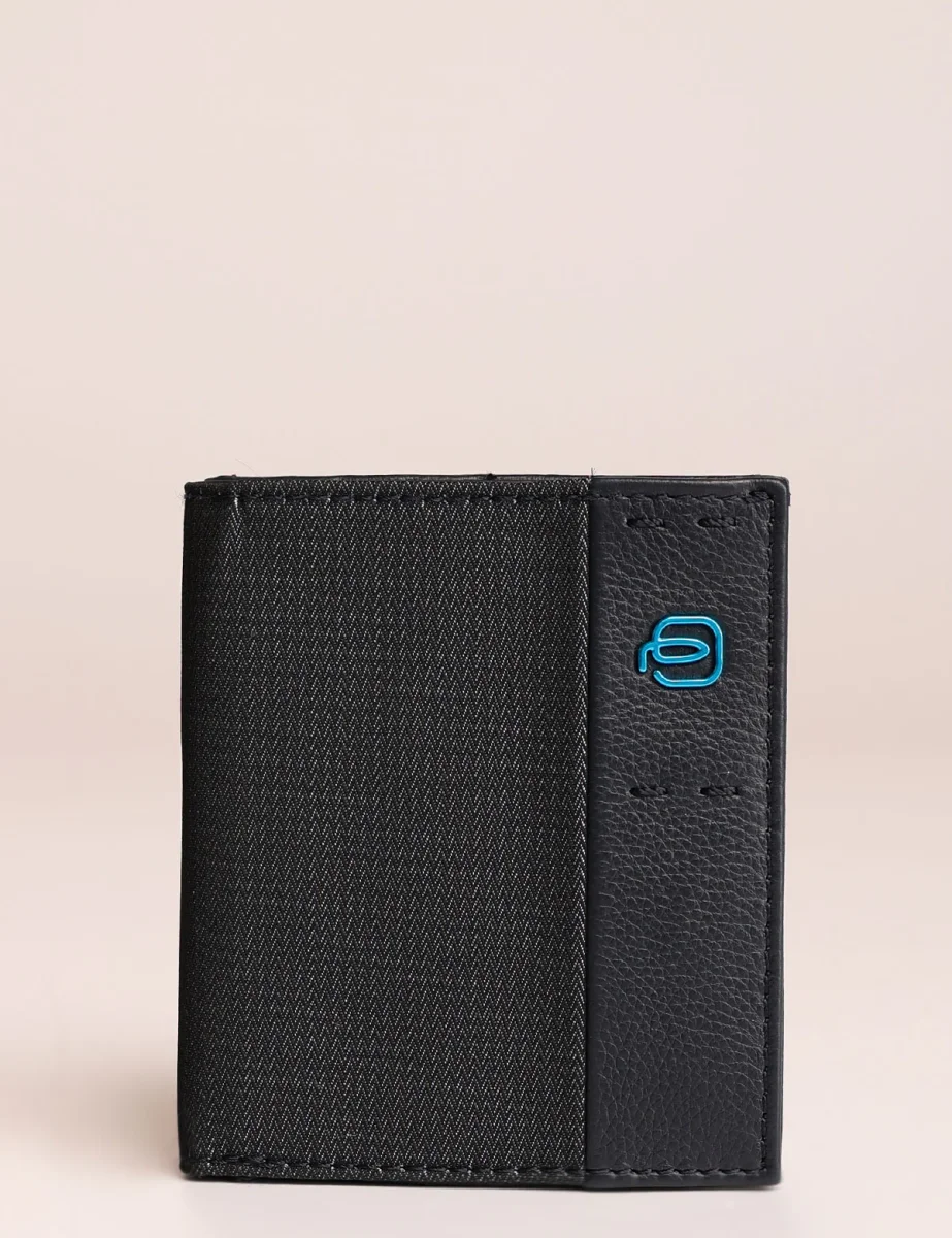 Portafogli da uomo Piquadro con esterno in tessuto tecnico ed interno in pelle, modello porta carte tascone verticale