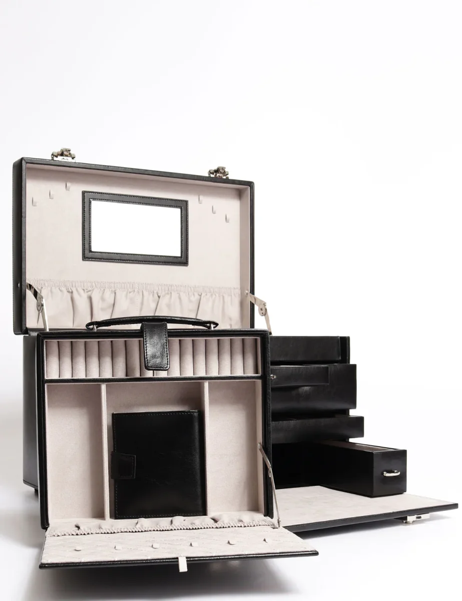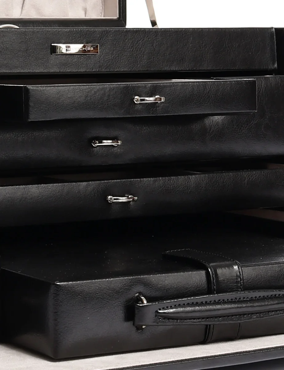 Scatola porta gioielli e orologi Friedrich23 di grandi dimensioni, dotati di diversi cassetti e astucci removibili da portare in viaggio. Modello realizzato a mano in vera pelle