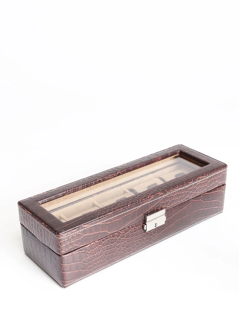 Cofanetto porta orologi Friedrich 23 da cinque posti con esterno stampa effetto coccodrillo con vetro superiore e cuscinetti interni removibili