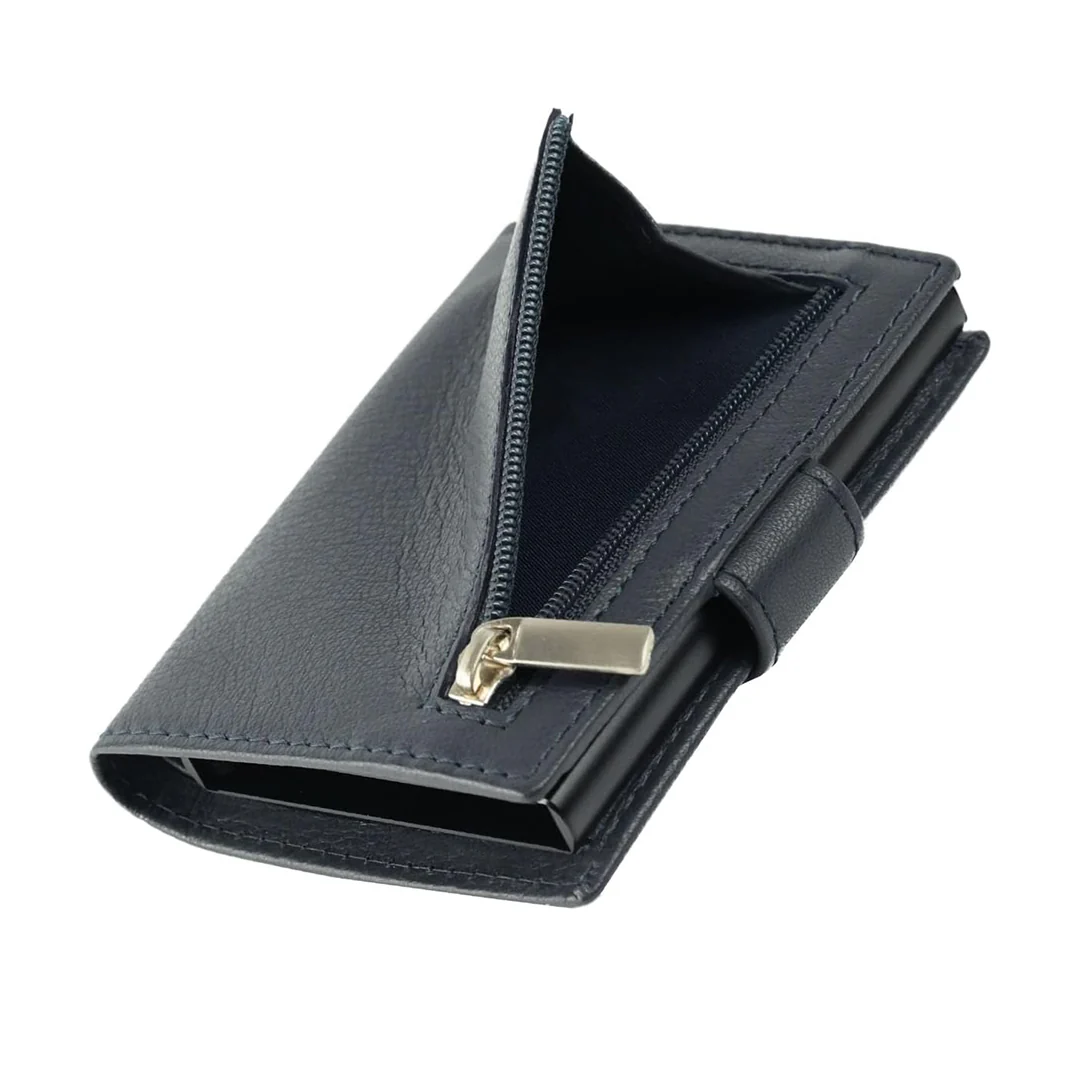 Portacarte di credito in metallo con porta monete a zip, schermato con protezione RFID