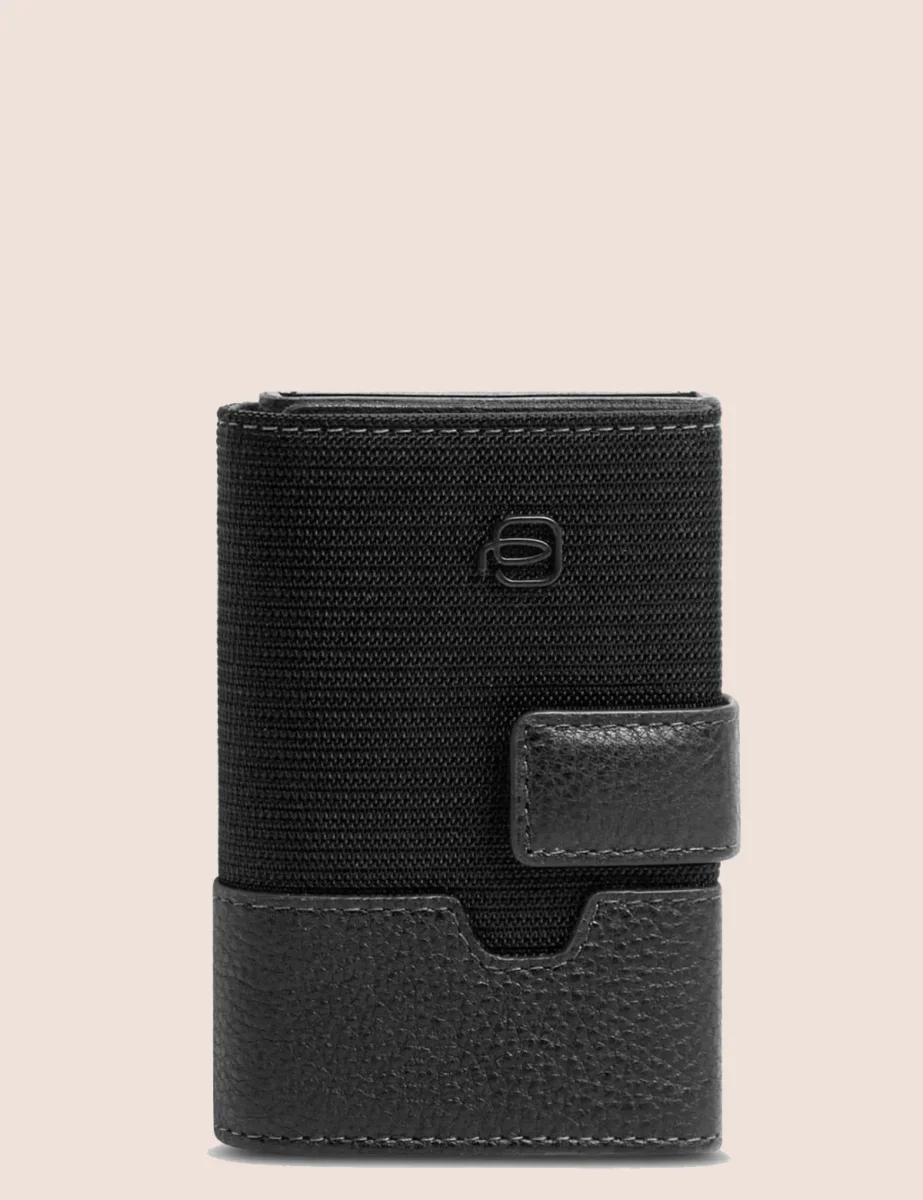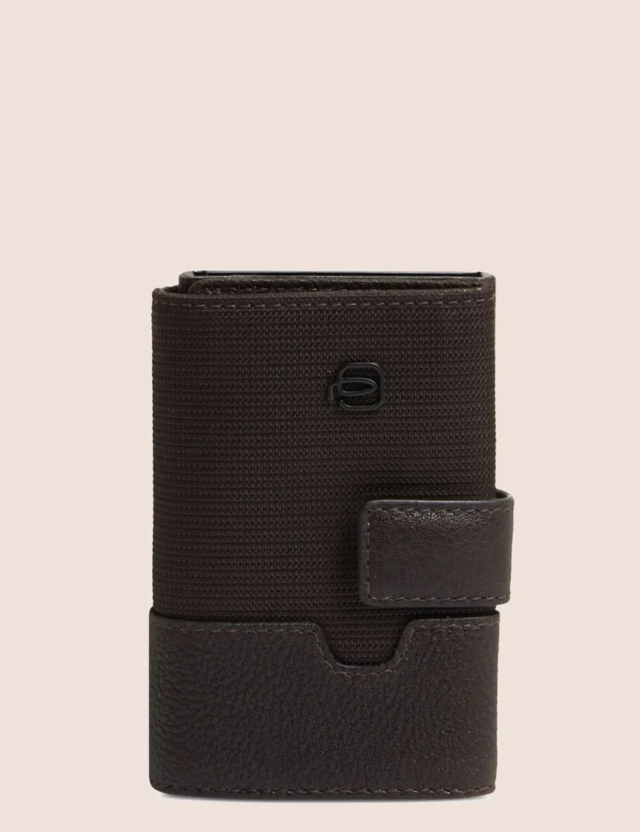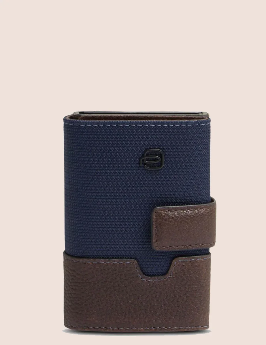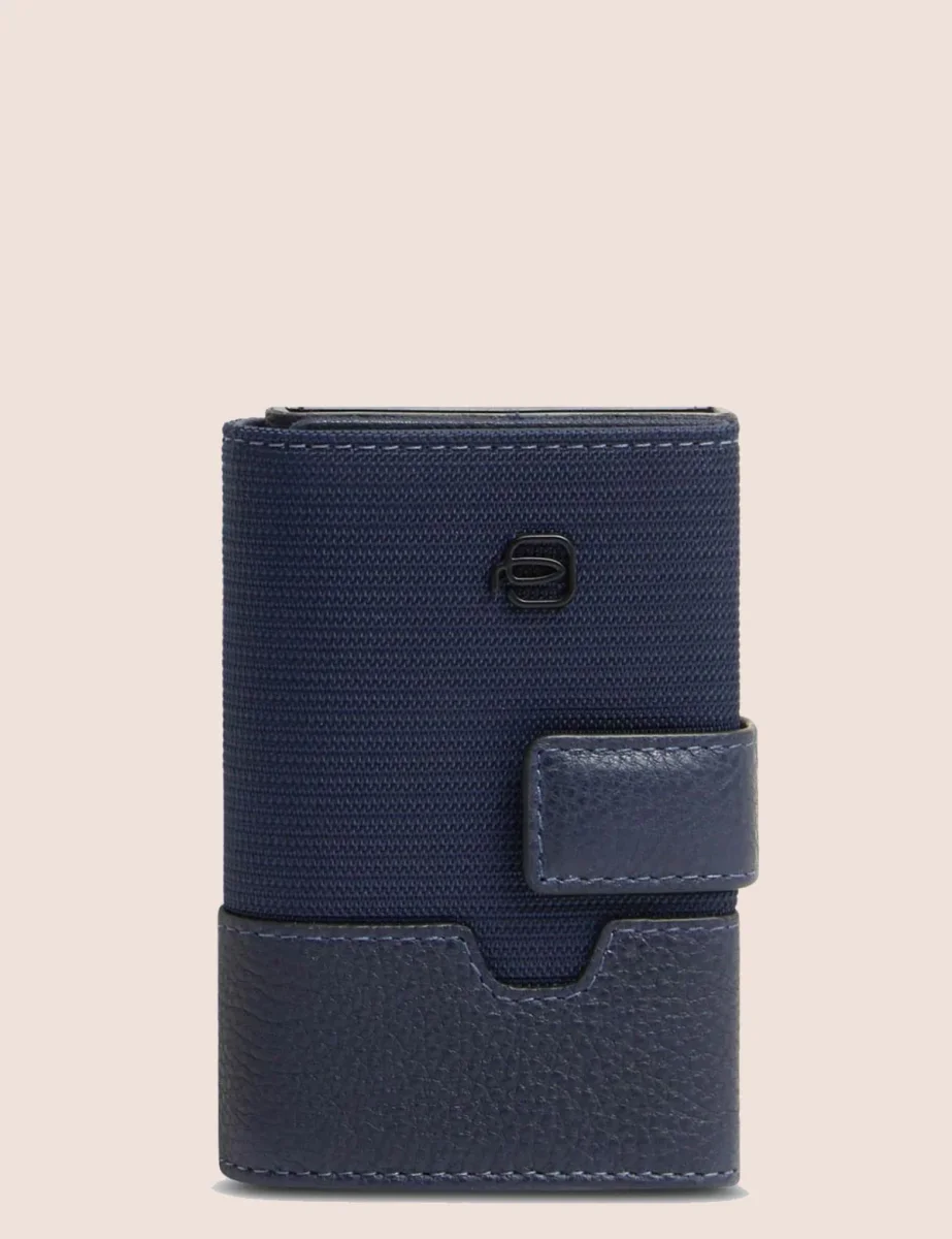 Portafoglio Piquadro con guscio rigido porta carte e scomparto porta documenti a piรน ante. Modello in pelle e tessuto
