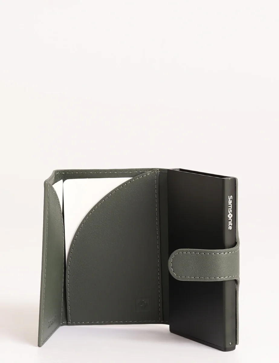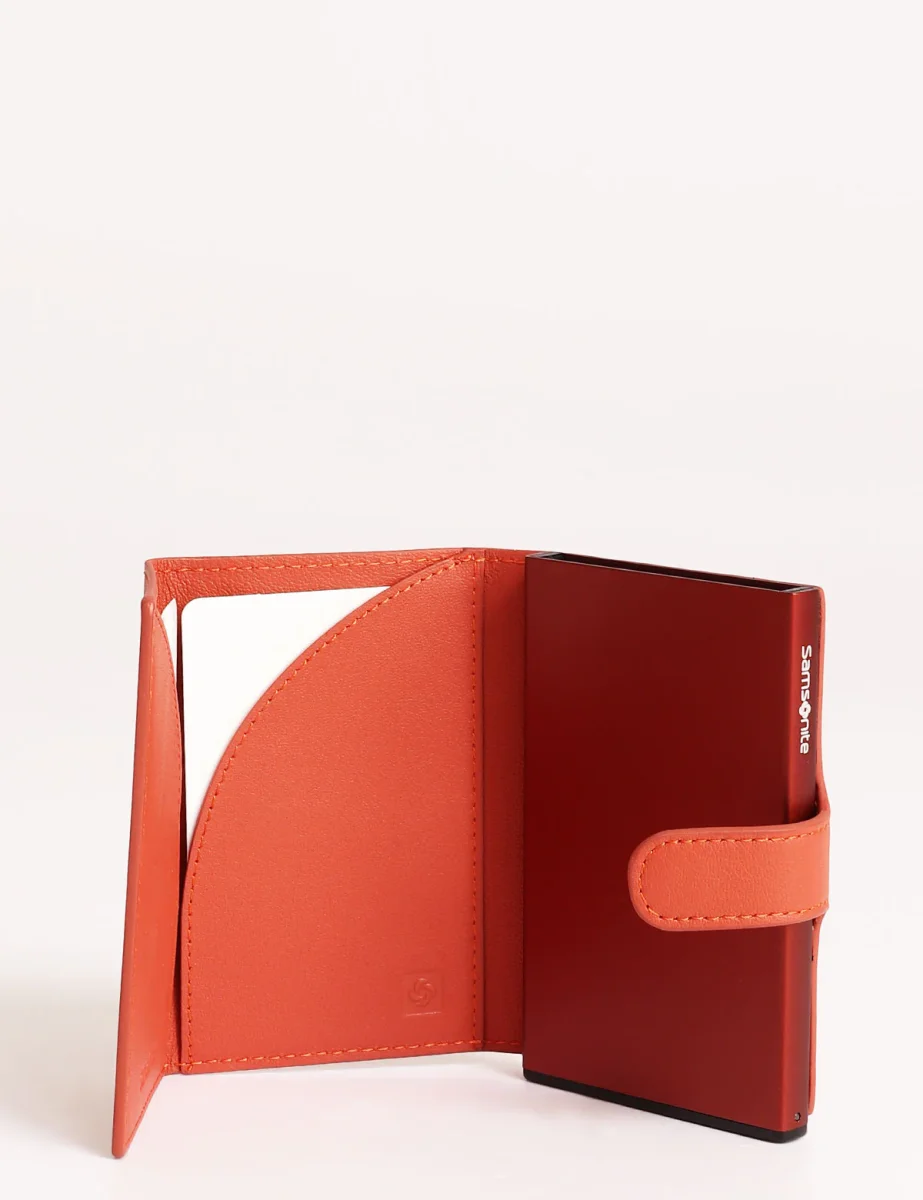 Portacarte Samsonite con meccanismo slide up per l’entrata e l’uscita delle carte dai compartimenti