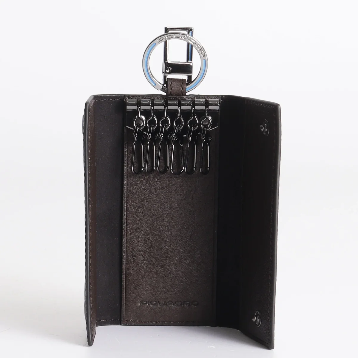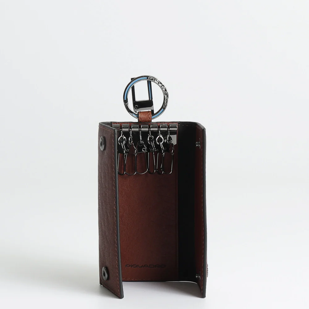 Portachiavi Piquadro porta blindata della linea Black Square, codice prodotto PC1397B3 dimensioni 6x12x6 cm moschettone esterno 6 ganci porta chiavi all’interno chiusura con bottoni a pressione acciaio cromato modello in pelle La linea Black Square di Piquadro si caratterizza per l’equipaggiamento altamente hi-tech, perfetto per gli amanti della tecnologia e del mondo business