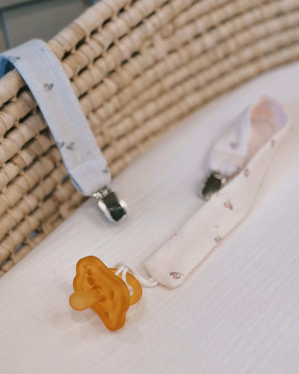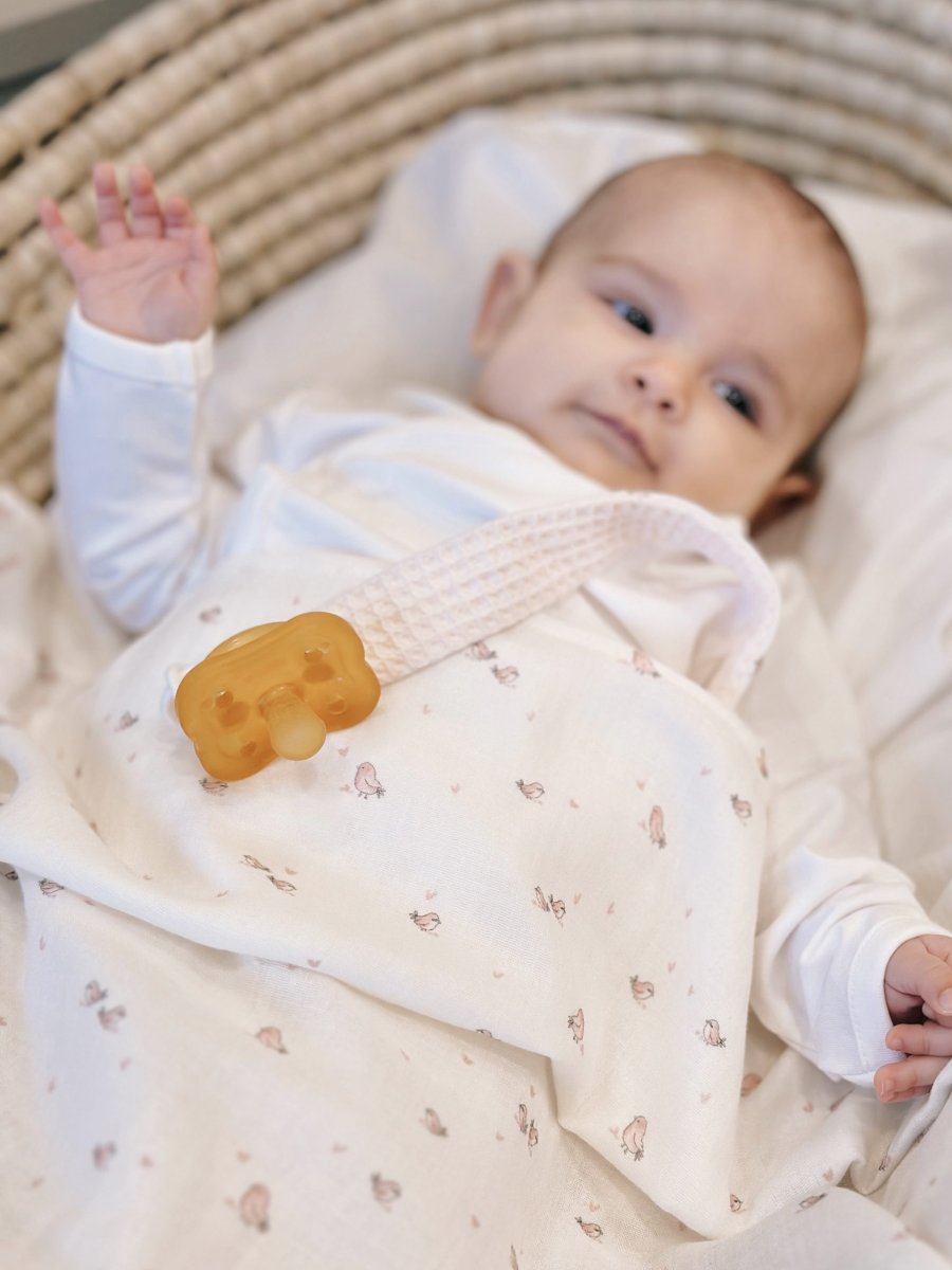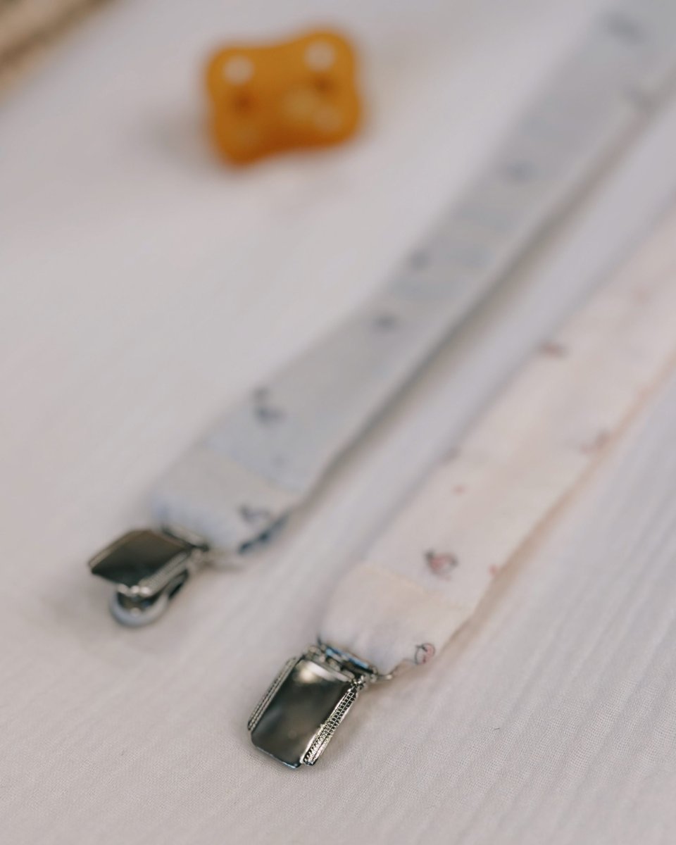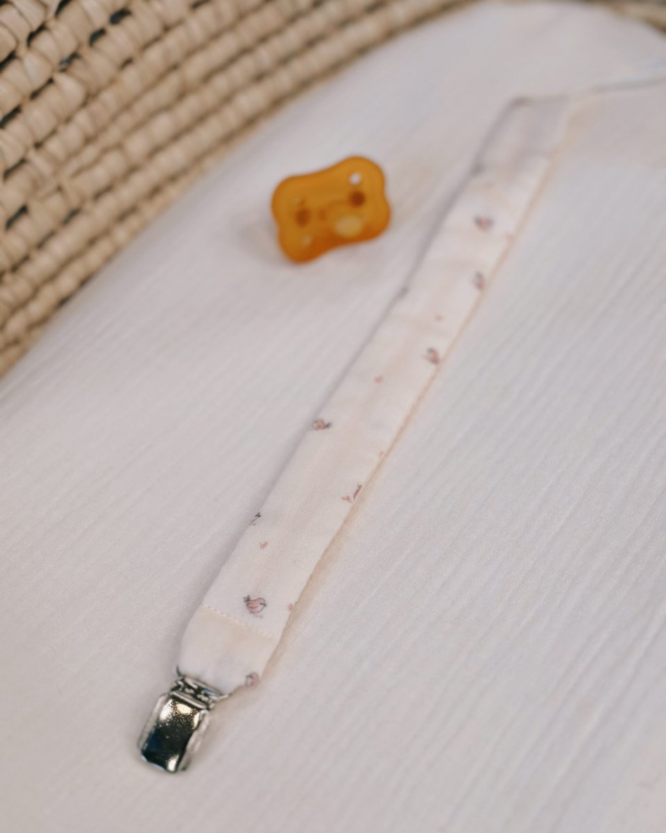 Portaciuccio in mussola di cotone e nido d’ape, personalizzabile con il nome per non perderlo mai. Idea regalo sempre apprezzata, simpatica e utile.