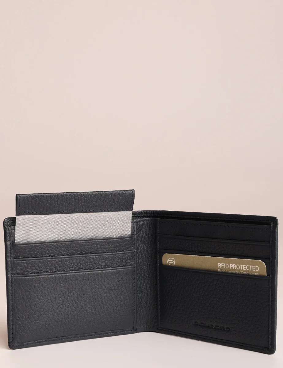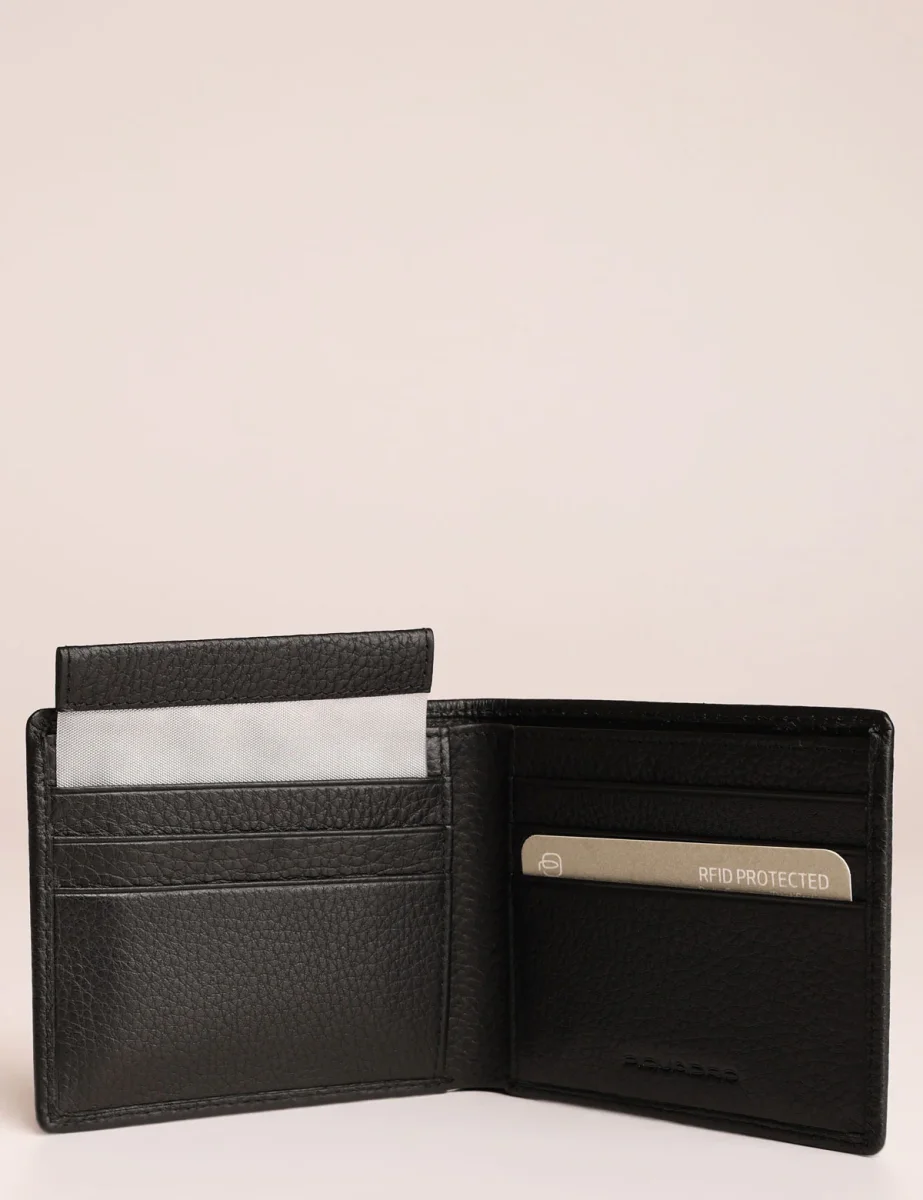 Portafogli da uomo Piquadro realizzato in pelle martellata con volantino interno estraibile e sistema di protezione antifrode RFID