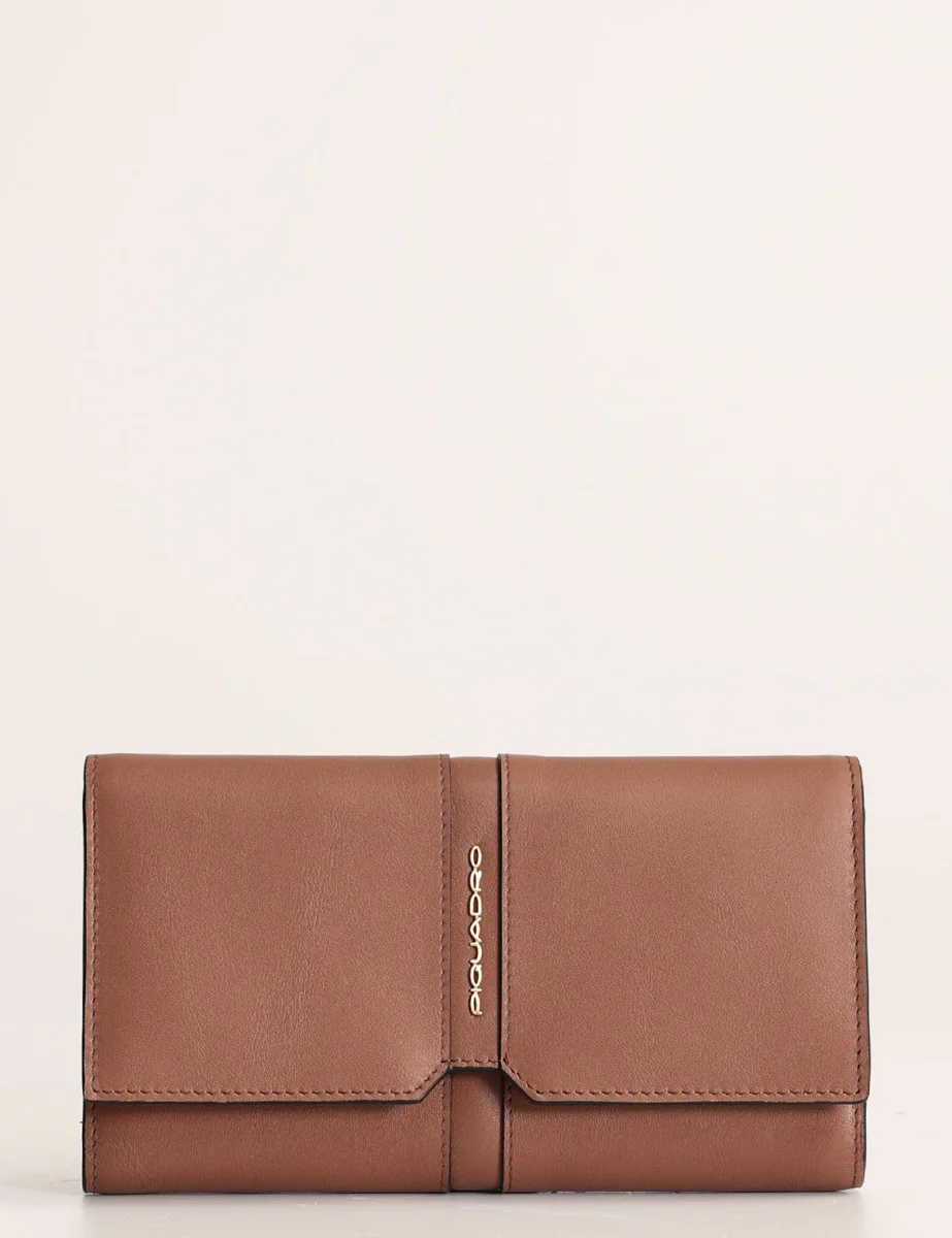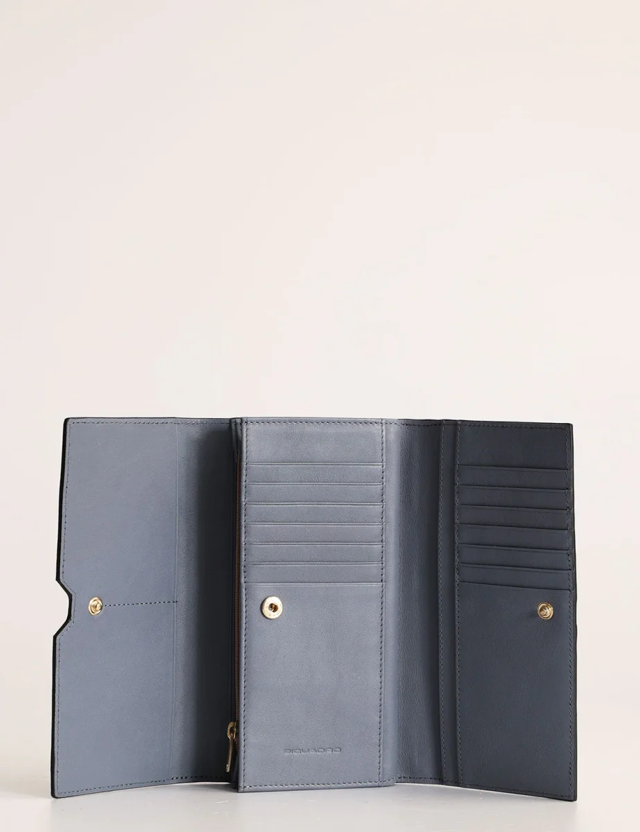 Portafoglio da donna Piquadro realizzato in pelle, modello con portamonete interno e sistema di protezione antifrode RFID