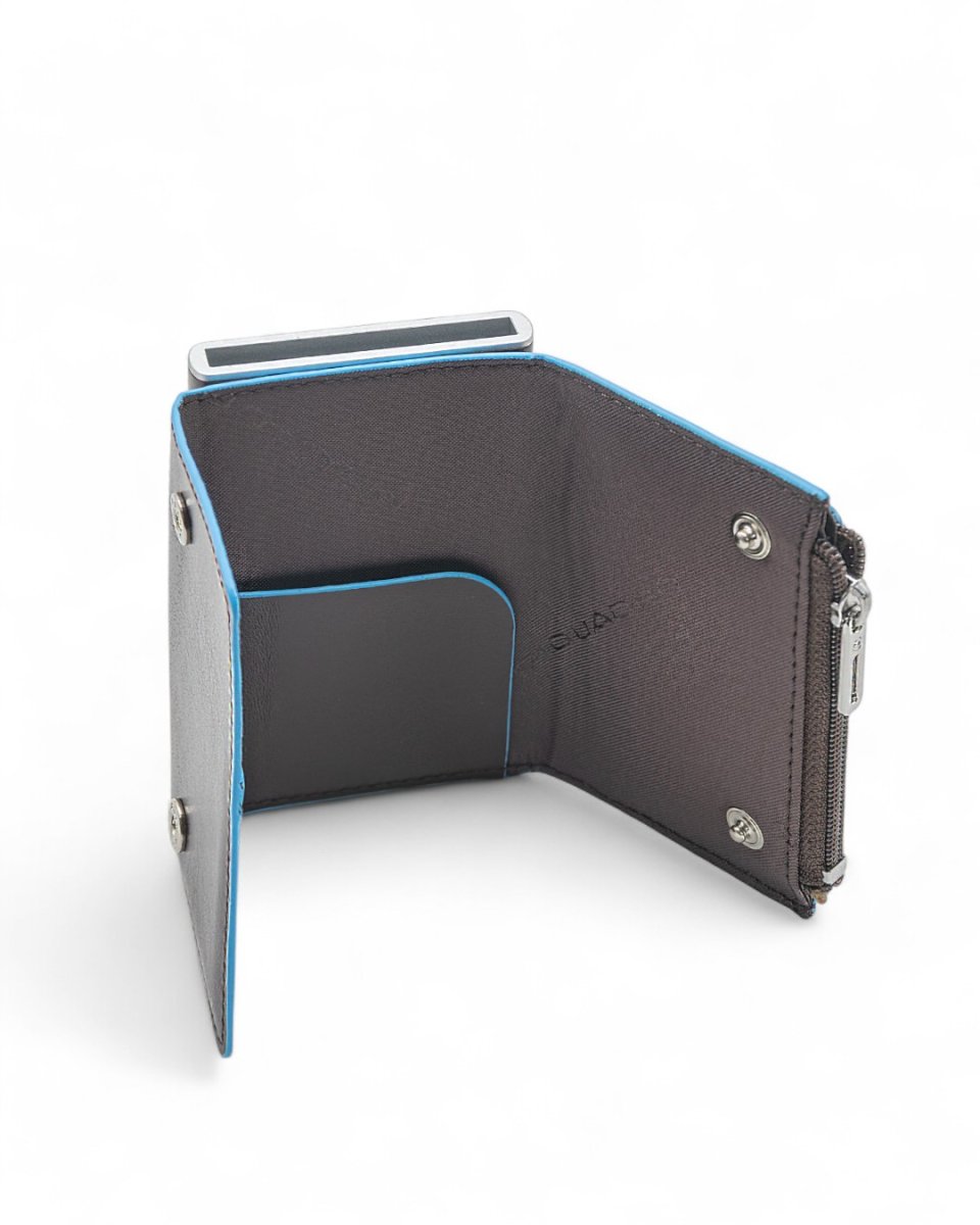 Portafoglio compatto uomo con portacarte automatico, porta monete e protezione RFID.