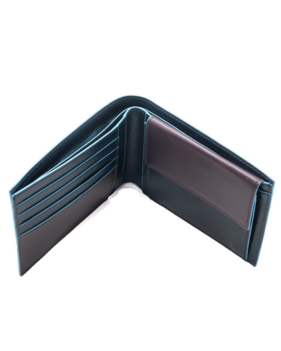Portafoglio uomo con porta monete e protezione anti frode RFID. 2 scomparti interni, 4 Fessure per carte di credito. Dimensioni: 12.5 X 9.0 X 2.0 (cm)
