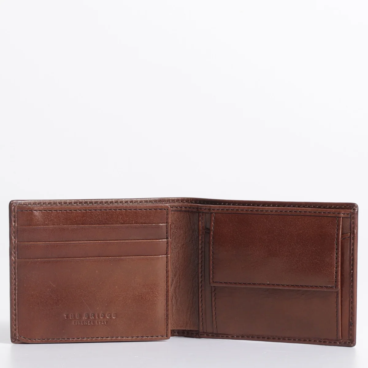 Portafoglio The Bridge porta documenti della linea Story Uomo, codice prodotto 01430701 dimensioni 11x9x2 cm porta monete interno con bottone slot porta carte di credito volantino interno porta documenti tasca principale per banconote fodera interna in tessuto