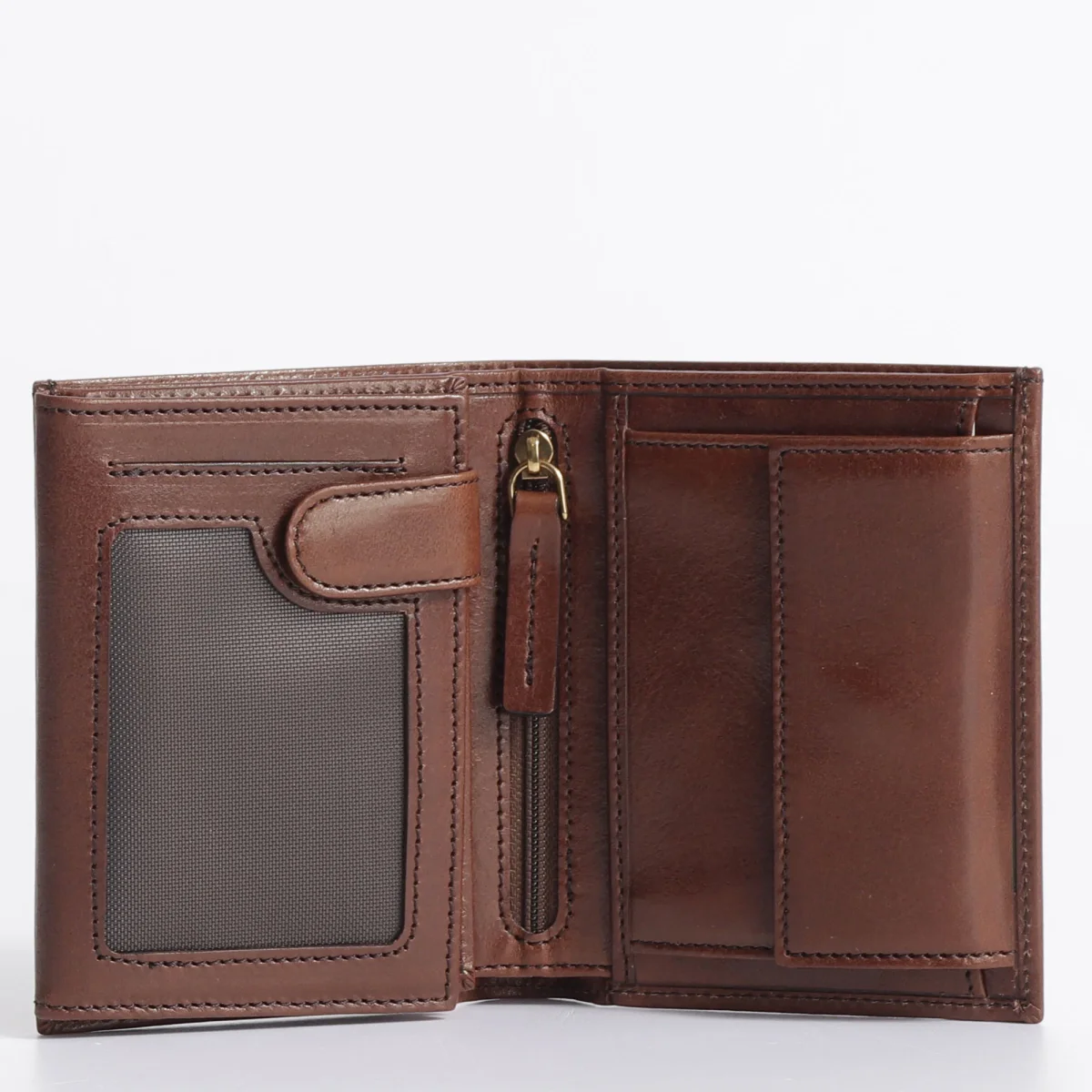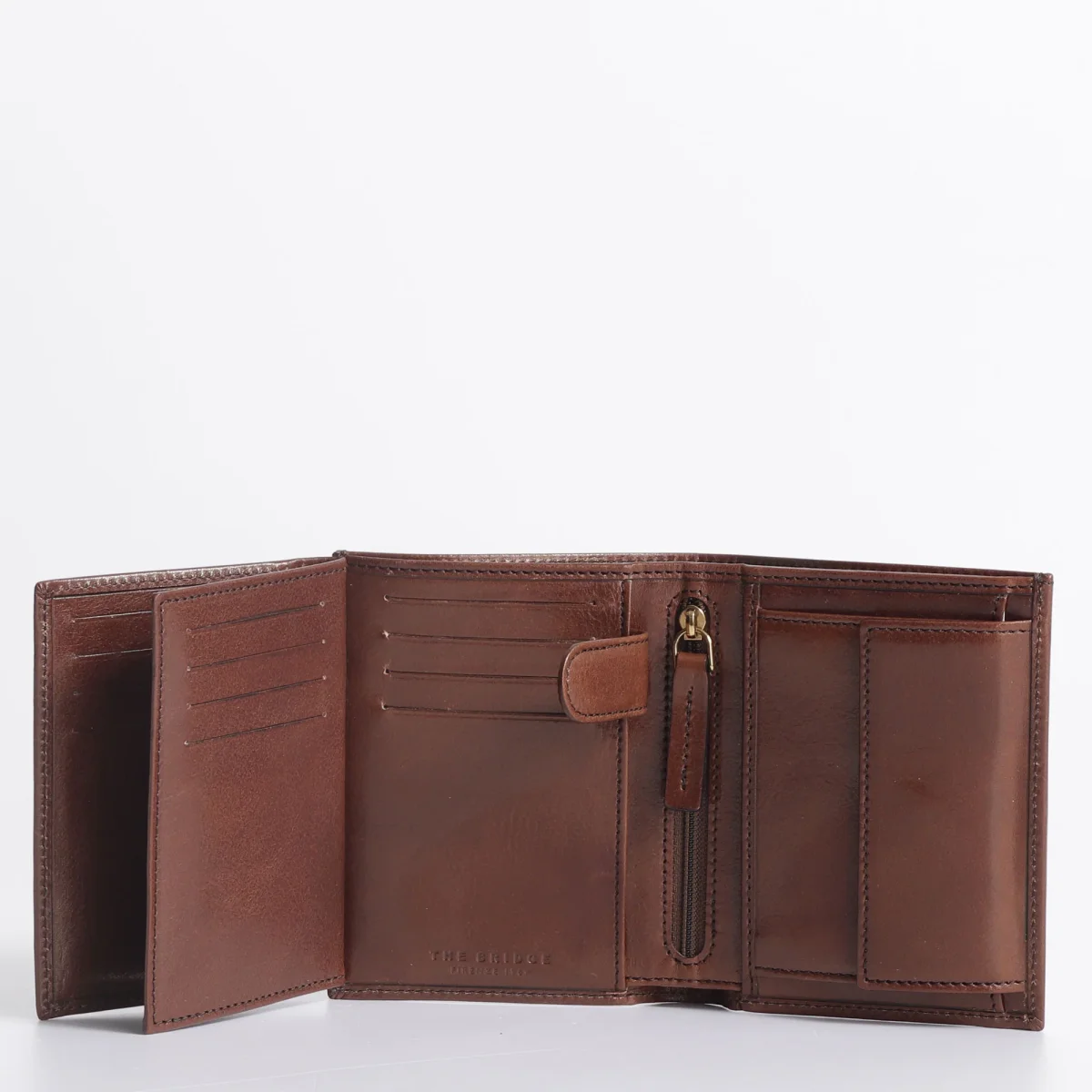 Portafogli da uomo in pelle The Bridge modello verticale tascone con scomparti porta carte, finestra porta documenti e portamonete interno con zip