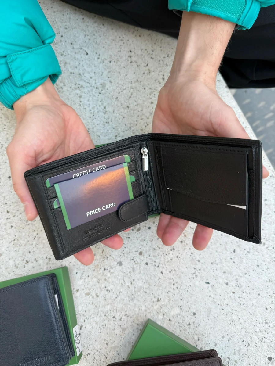 PORTACARTE VERA PELLE CON TASCA ZIP INTERNA