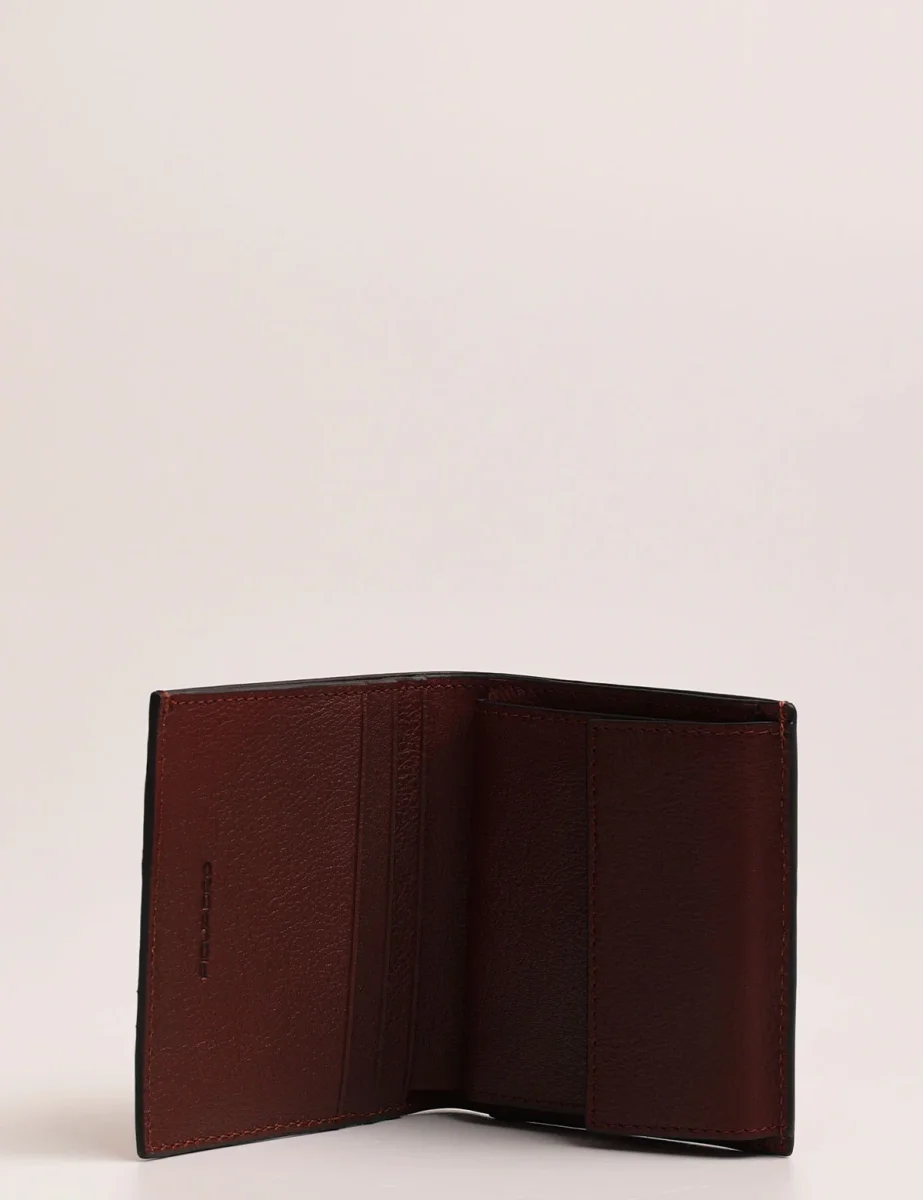 Portafoglio da uomo Piquadro modello verticale con volantino e portamonete interno, realizzato in pelle