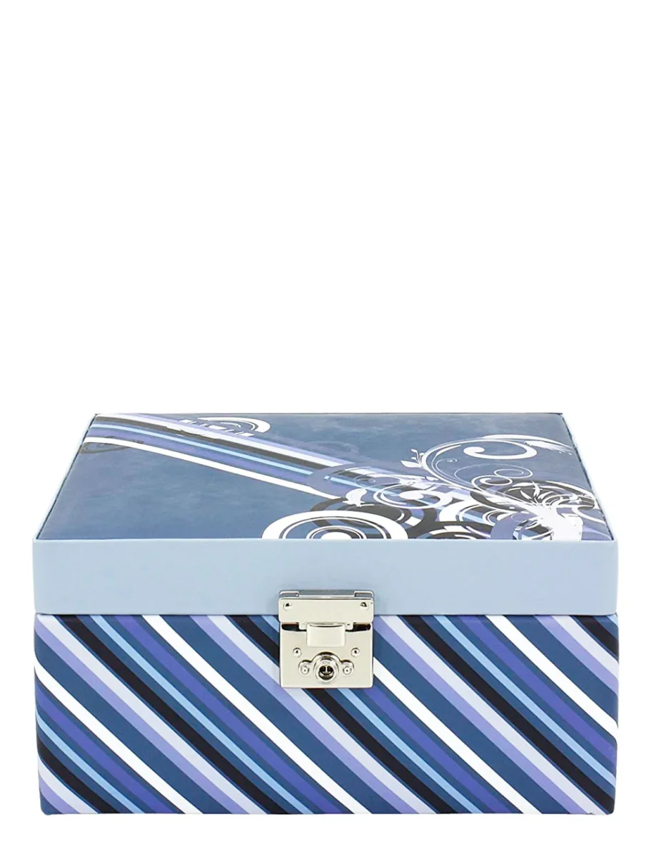 Scatola porta gioielli Friedrich23 con particolare stampa a righe multicolore, dotata di specchio interno e di scomparto removibile