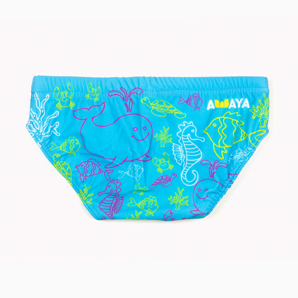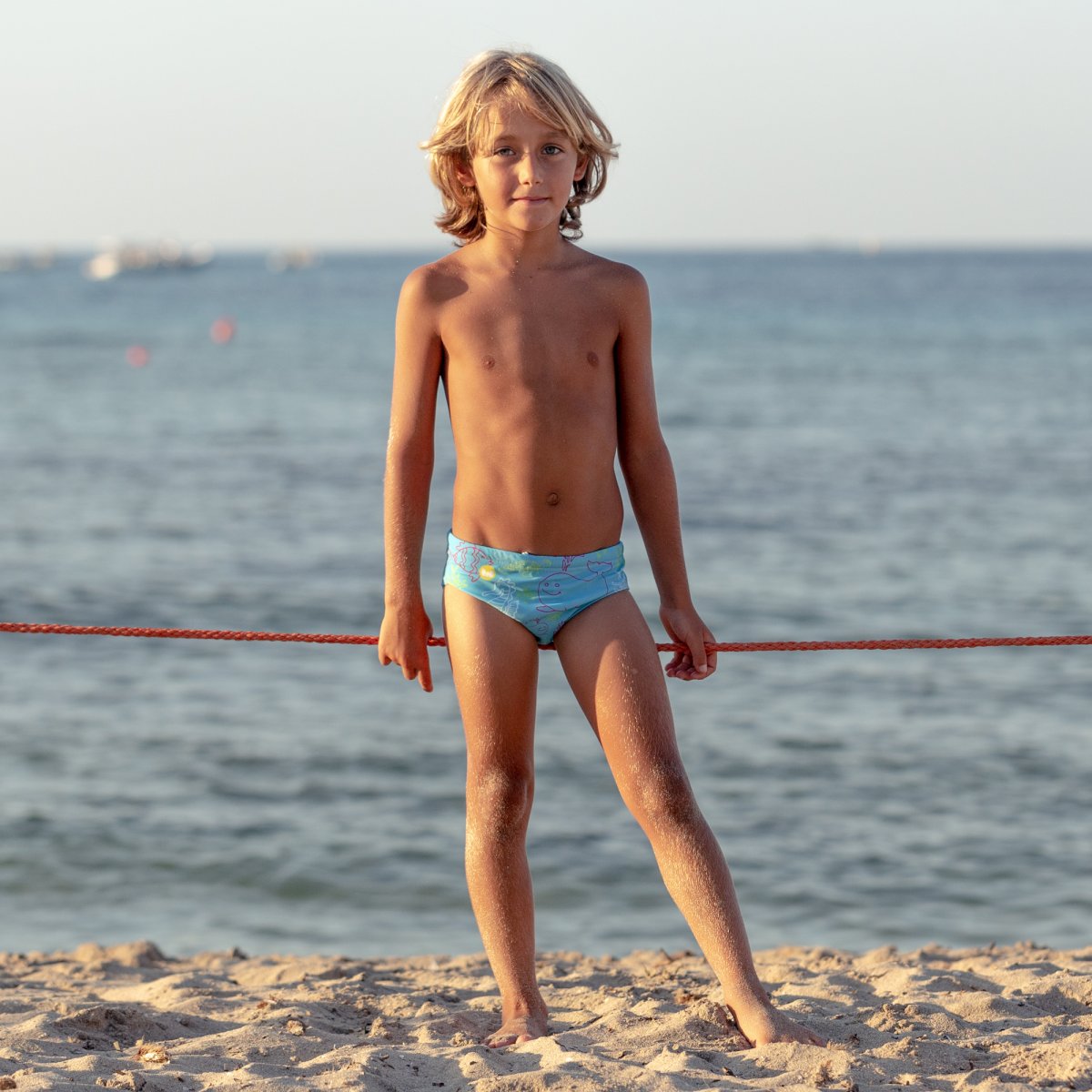 Slip nuoto bimbo comodo ed elastico, Tessuto anti-cloro. Il costume รฉ progettato per resistere all’uso giornaliero, anche in presenza di elevate quantitรก di cloro. Completamente foderato al suo interno per evitare trasparenze, e cuciture rinforzate per una maggiore durabilitรก.