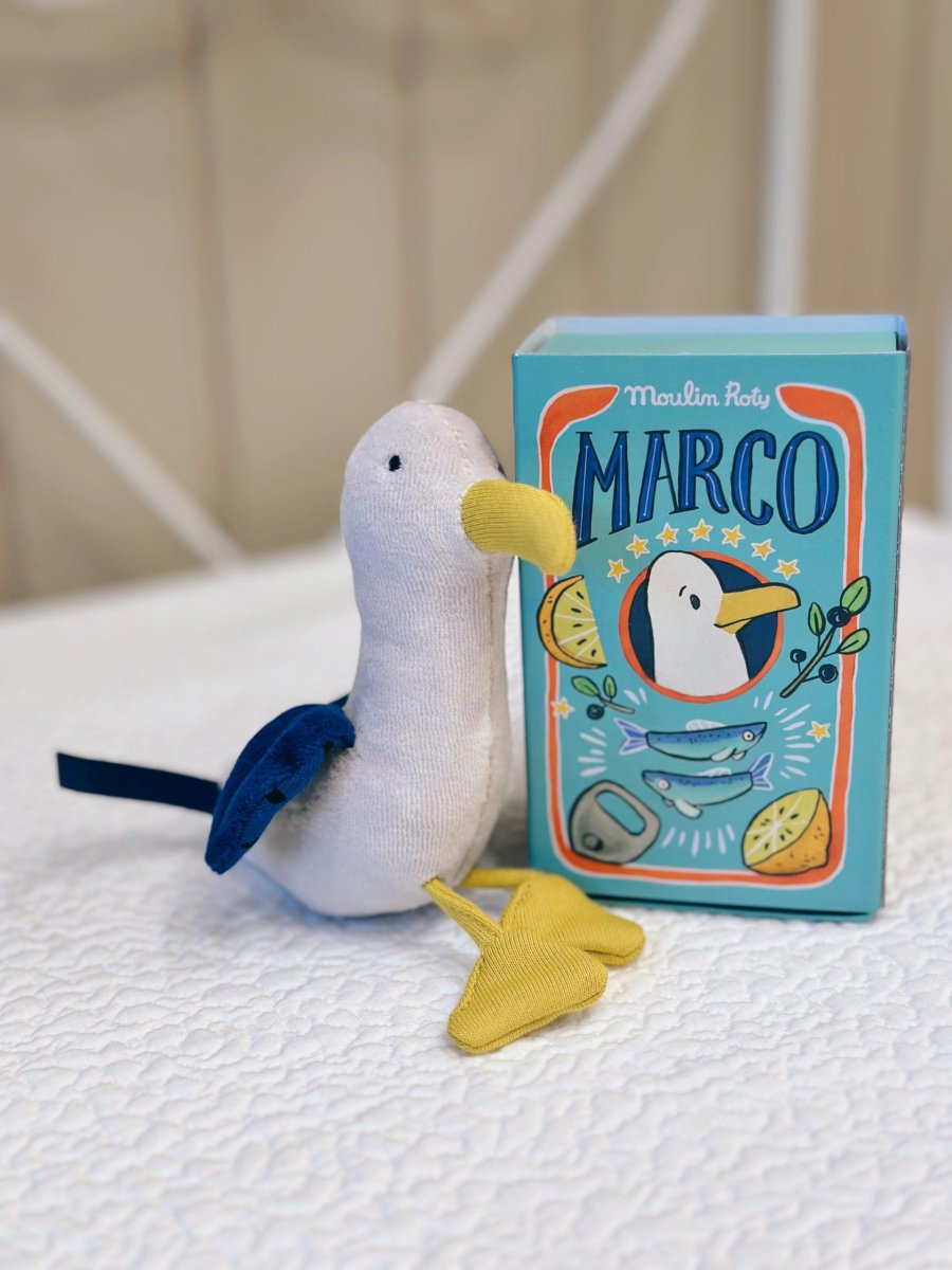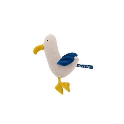 Marco il gabbiano birichino che si sente tintinnare! Questo sonaglio facile da afferrare è morbidissimo e si può portare ovunque!