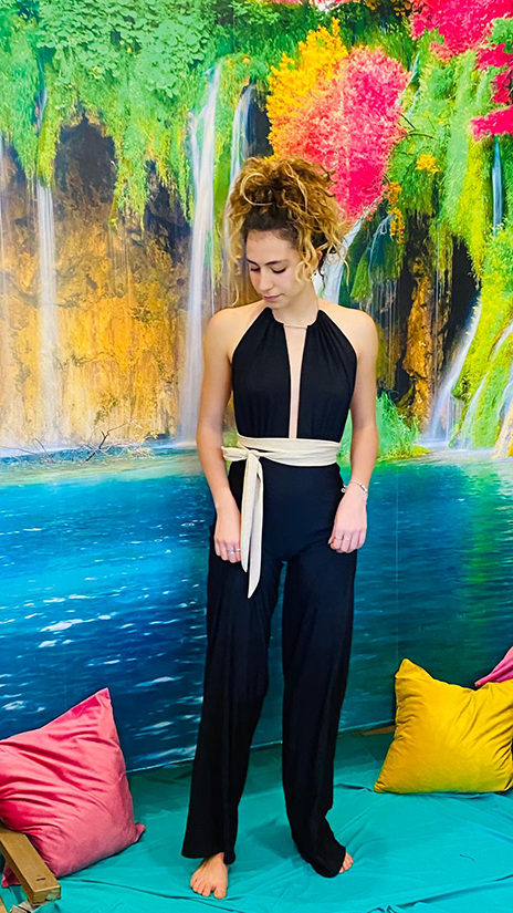 - scollatura sul dรฉcolletรฉ profonda che puรฒ essere indossata a X o a V