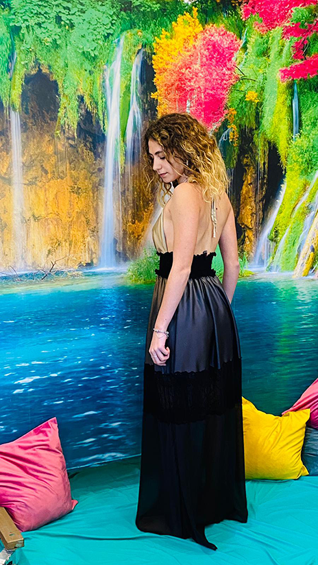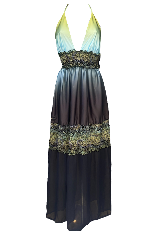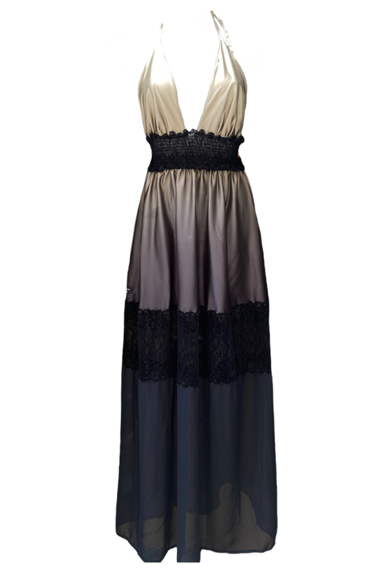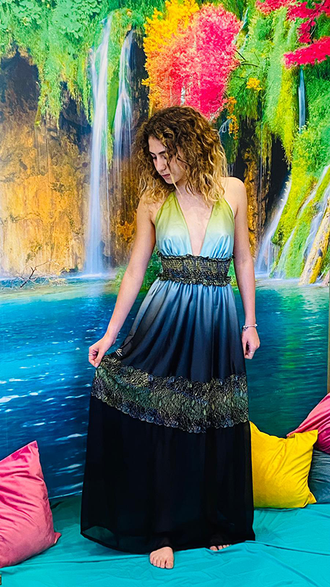 Vestito Island lungo con variante colore: Abito lungo con passamaneria farfalle flockate, elegante e raffinato, lo amerai!