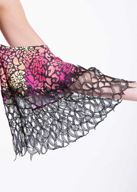 - orlo in macramรจ sia su maniche che sul ginocchio