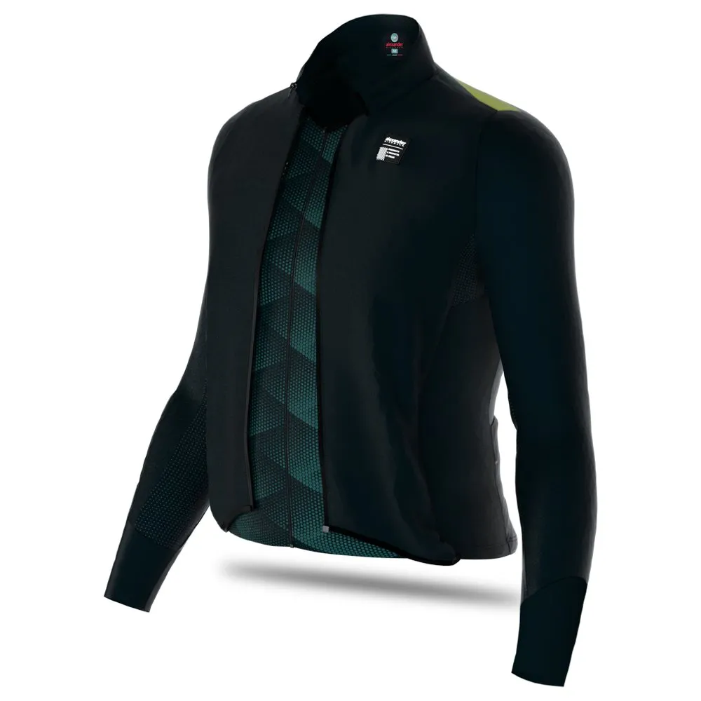 Giacca da ciclismo invernale con doppiopetto antivento. L’eccellenza Made in Italy: design unico e qualitร superiore per una pedalata imbattibile.