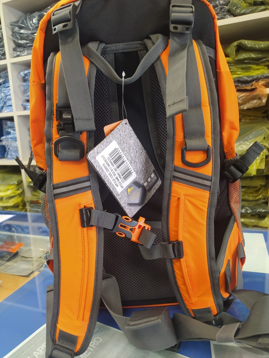 Zaino da escursionismo e trekking per sviluppi di breve intensità . Realizzato con due scomparti principali con chiusura a zip, due tasche laterali in rete e fibbie di compressione laterali. Basto ELS (Ergonomic Light System): schienale fisso e imbottito associato a canali centrali preformati, ergonomici ed ideali per garantire stabilità e circolo dell’aria durante l’attività .