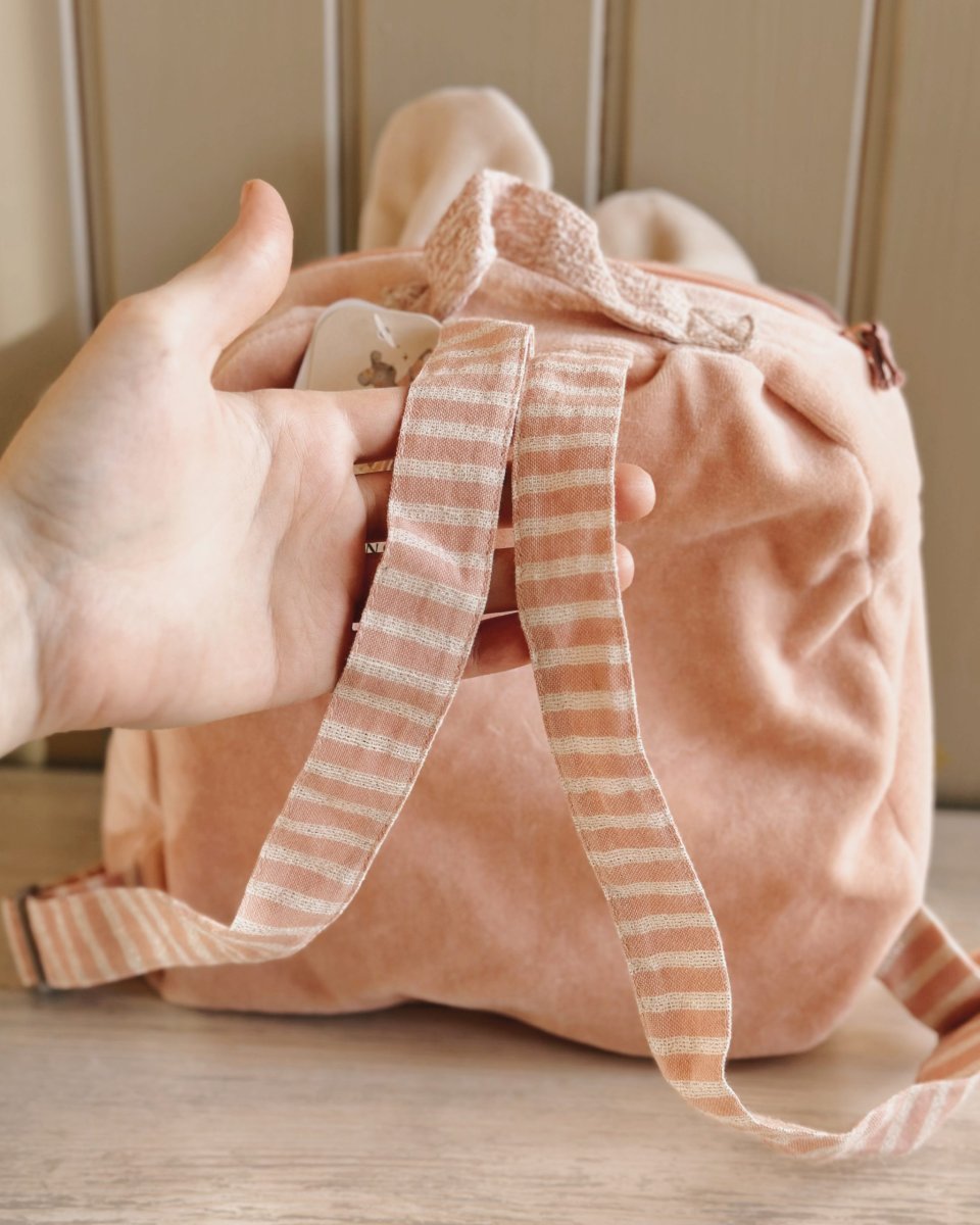 Comodo e adorabile, lo zainetto morbido Topo rosa è perfetto per il tuo bambino! Realizzato in morbida spugna a velluto (certificato Oeko-Tex), con cerniera, spalline regolabili e gancio per poter appendere. Ideale per la scuola materna. Sarà un compagno inseparabile del vostro bambino per portare tutte le piccole cose come una coperta, uno spuntino o un gioco creativo. Può essere personalizzato con il nome del tuo bambino per renderlo unico!