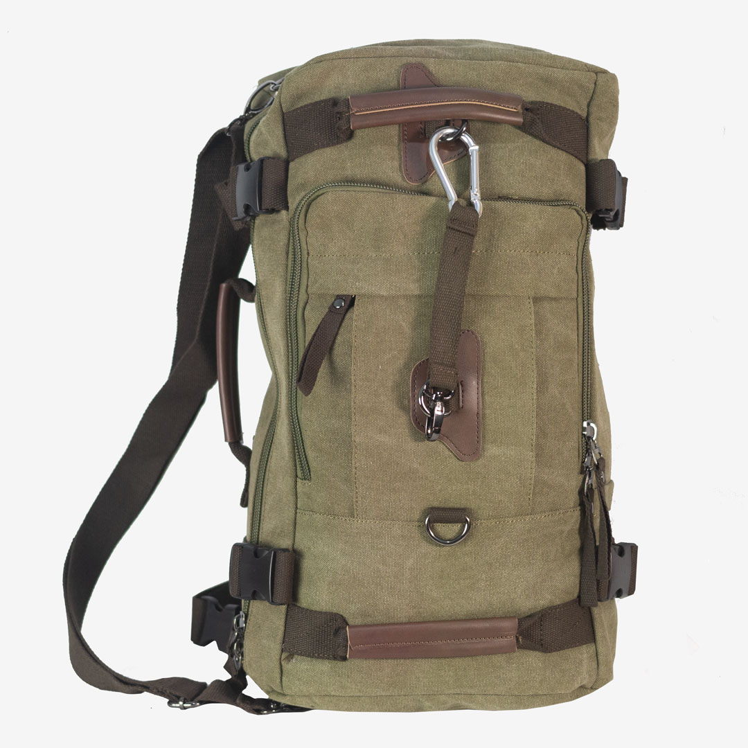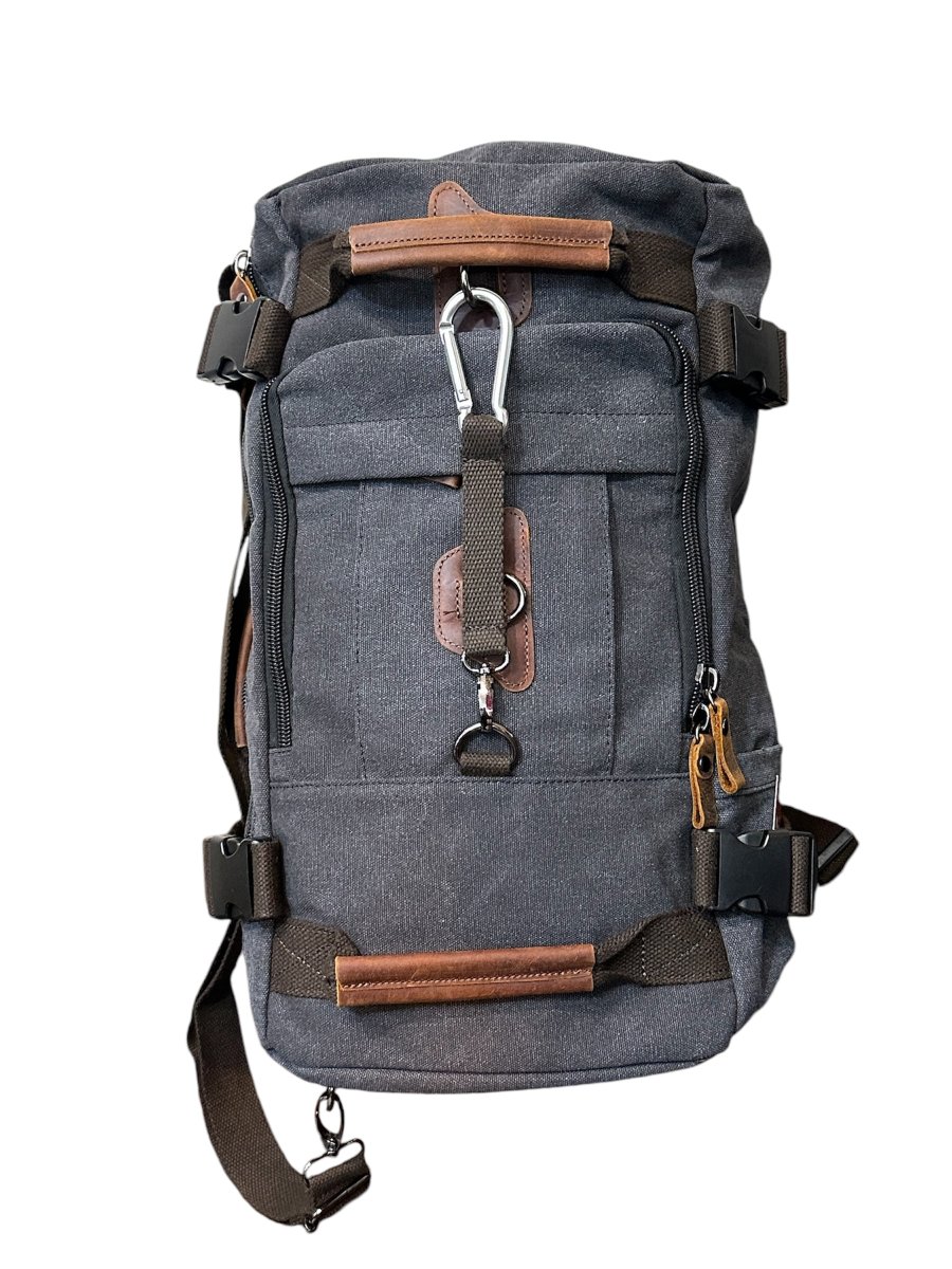 ZAINO IN CANVAS MOSCHETTONE BORSA TRACOLLA ZAINO INSERTI IN PELLE LAVAGGIO VINTAGE SUPER RESISTENTE VARIE ZIP E TASCHE ESTERNE TASCA INTERNA COMPUTER LAPTOP MISURE 50X29X18 cm