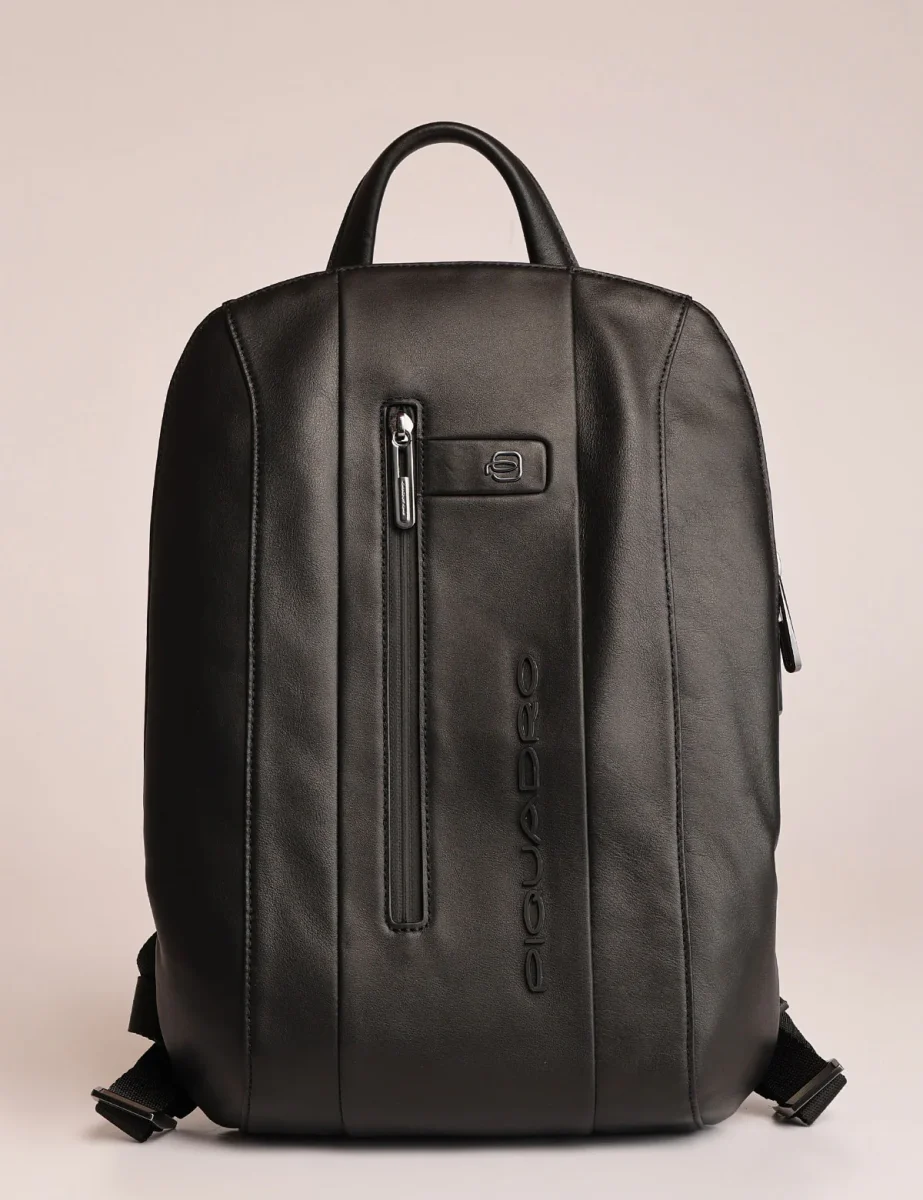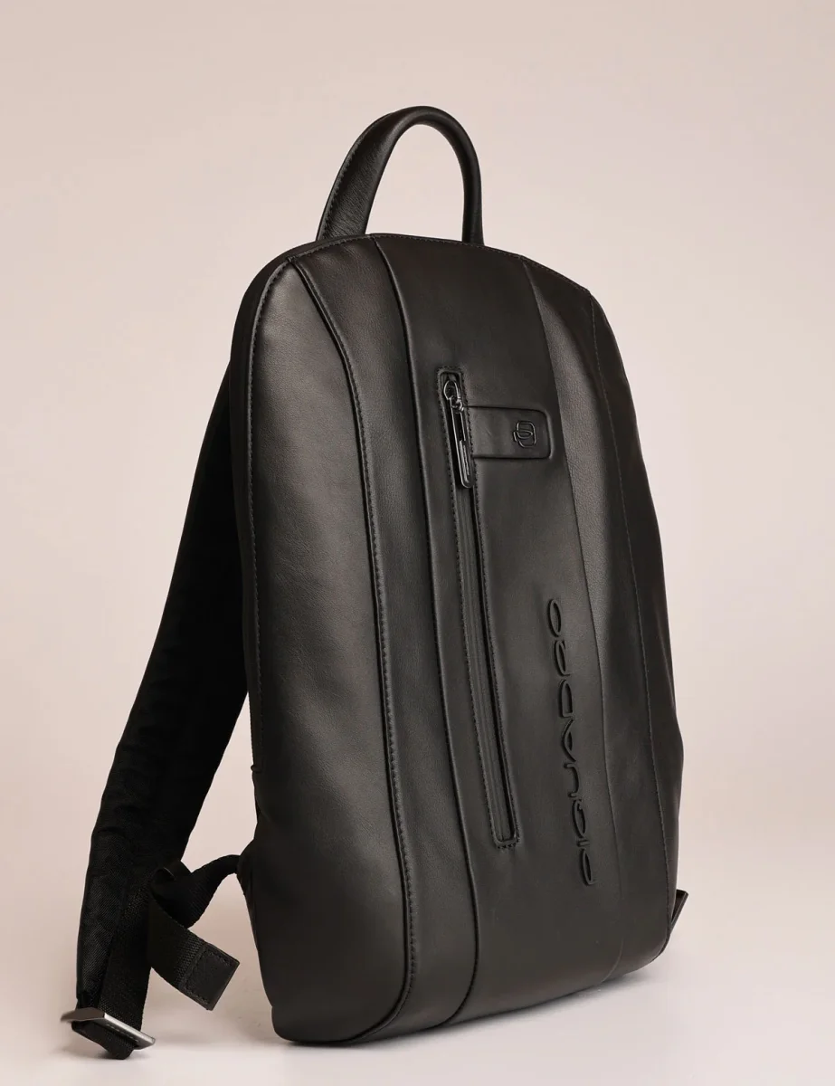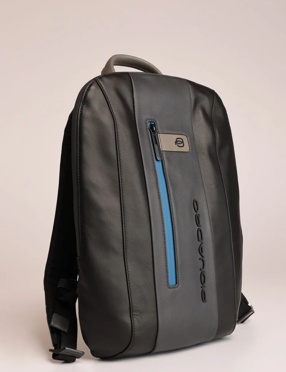 Zaino in pelle Piquadro di dimensioni ridotte e dal design sottile dotato di scomparto interno porta computer, tablet o iPad fino a 11 pollici