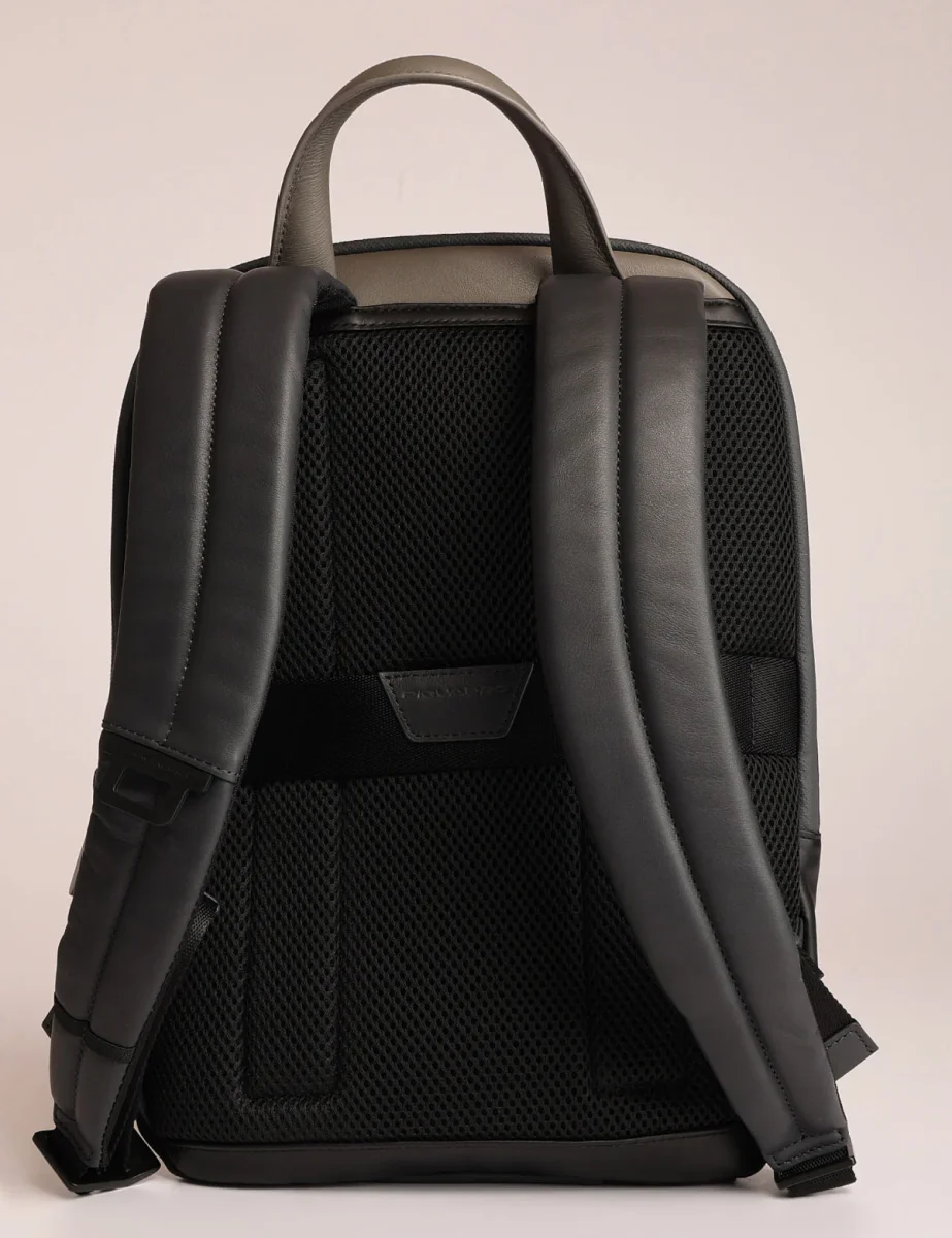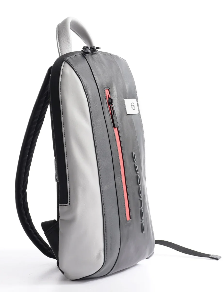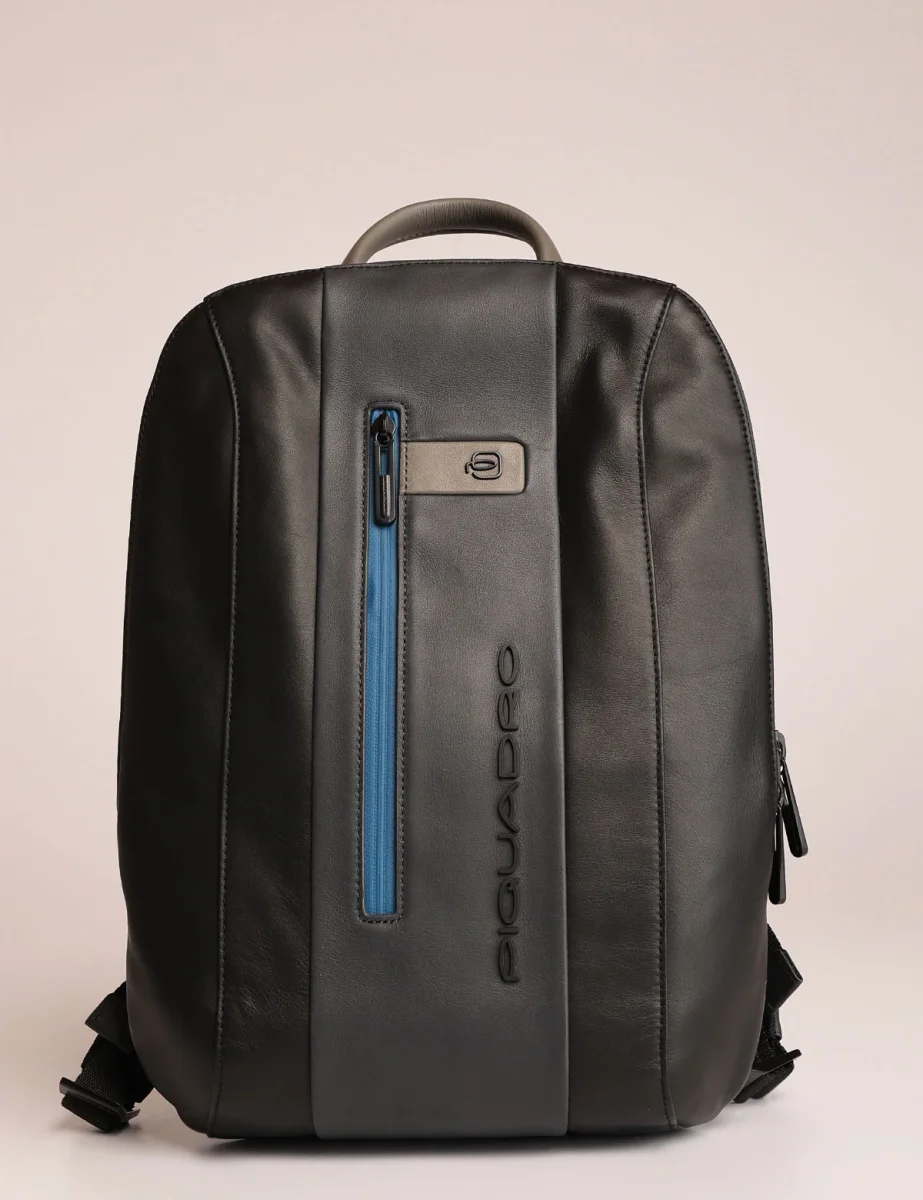 Zaino in pelle Piquadro di dimensioni ridotte e dal design sottile dotato di scomparto interno porta computer, tablet o iPad fino a 11 pollici