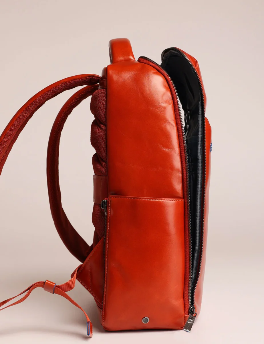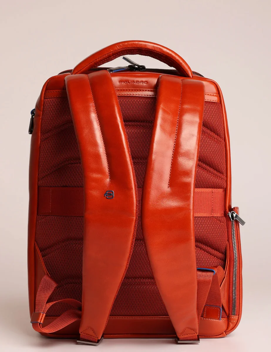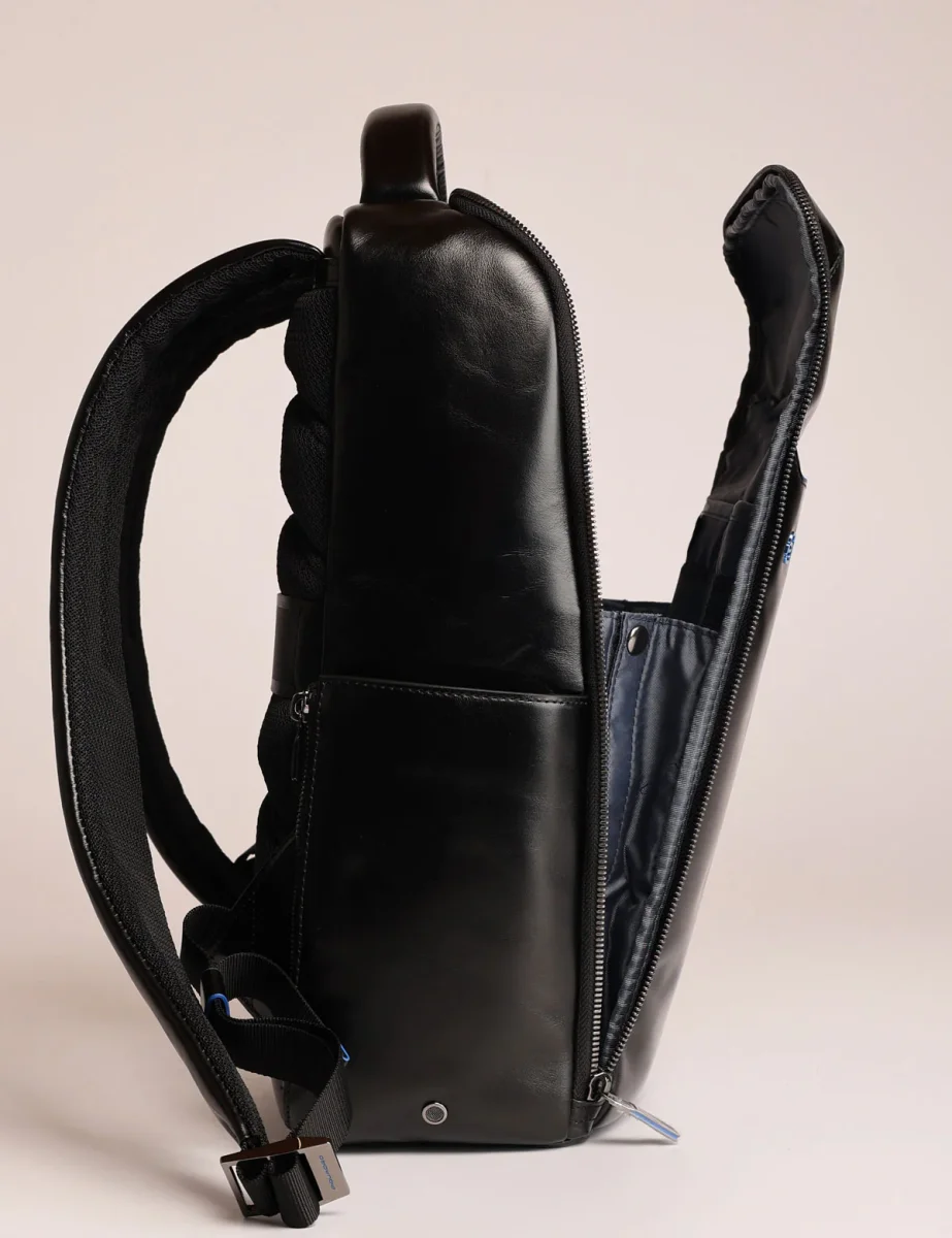 Zaino in pelle Piquadro modello con particolare apertura a ribalta fast-check per porta computer fino a 14 pollici