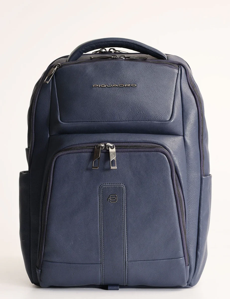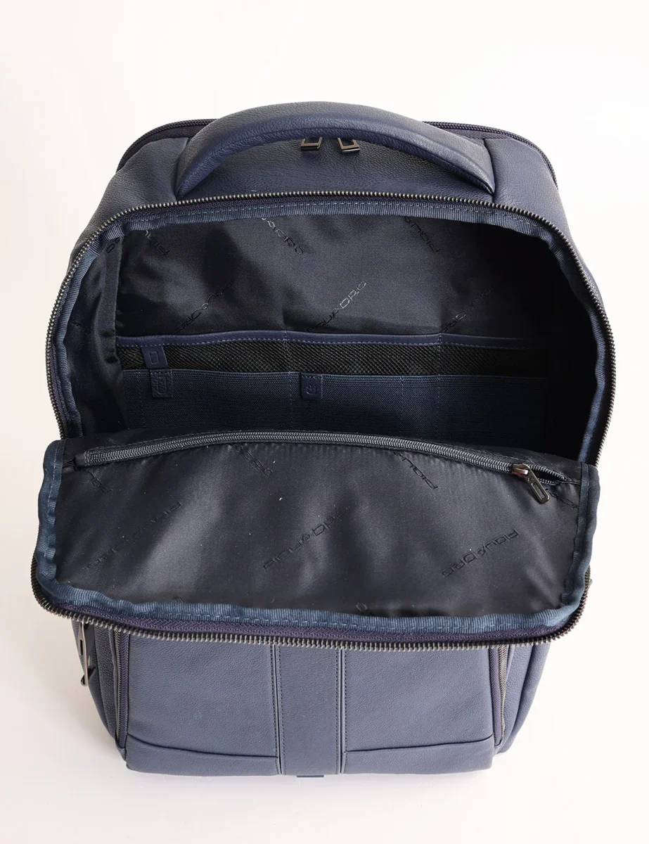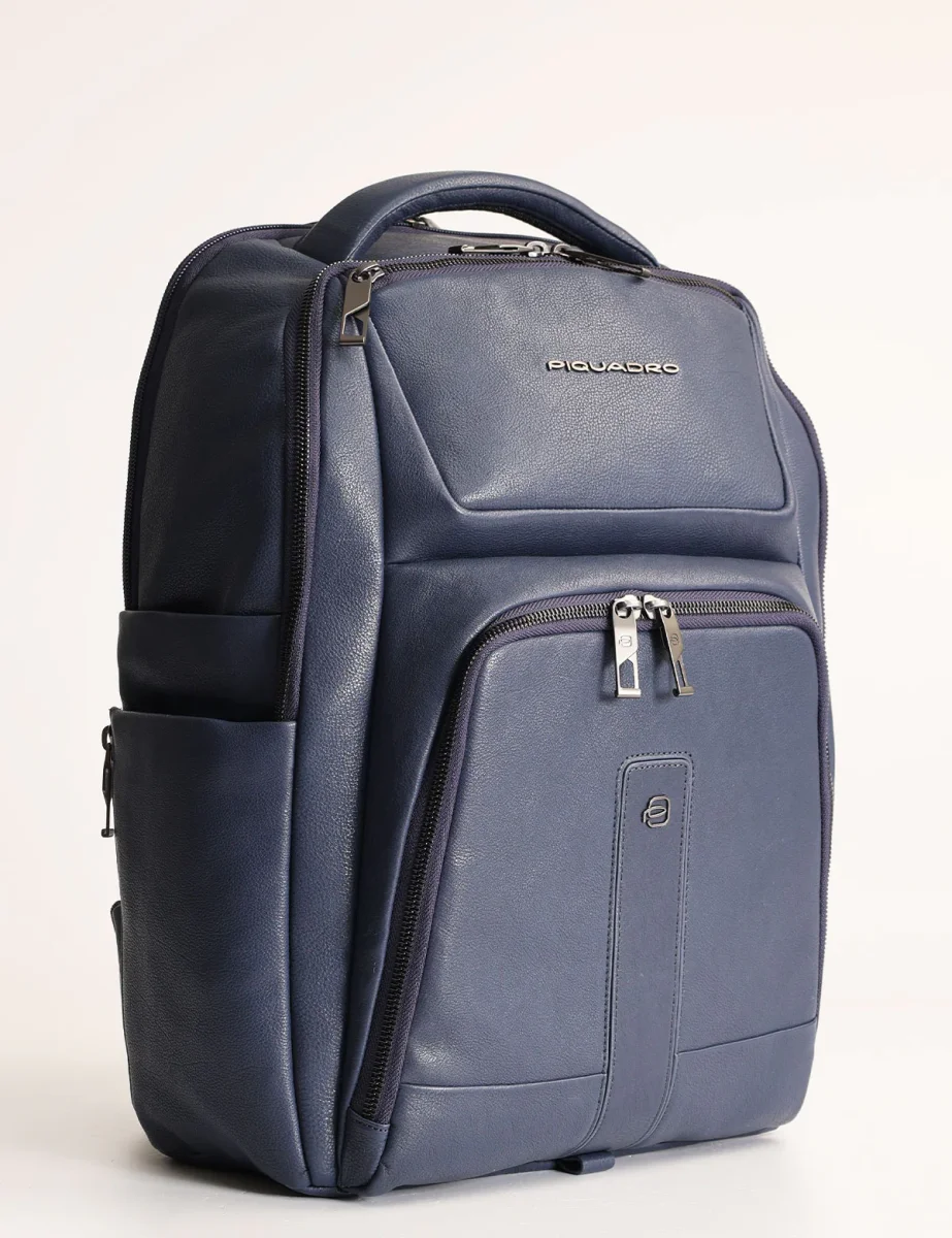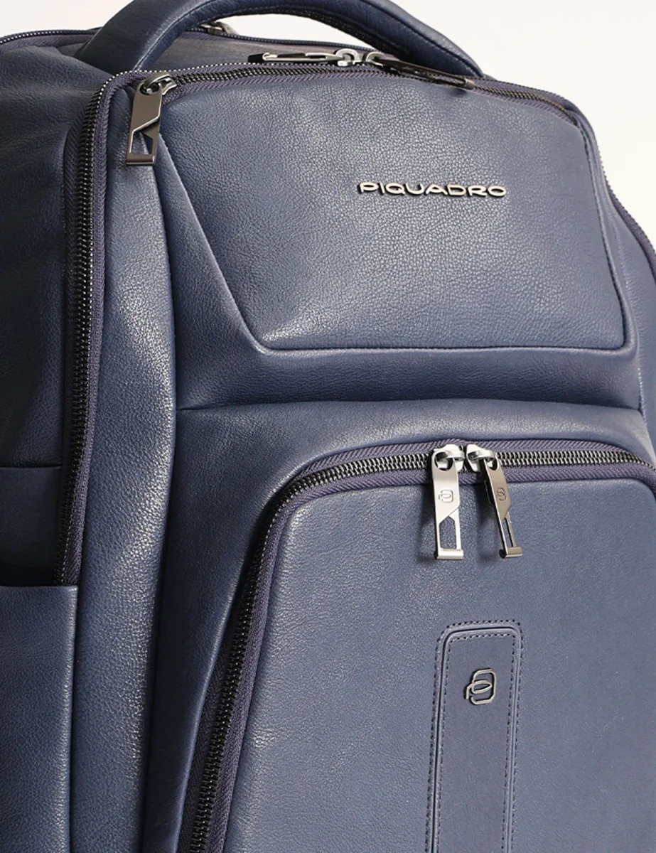 Zaino da uomo Piquadro modello con due scomparti porta pc da 15.6 pollici, realizzato in pelle